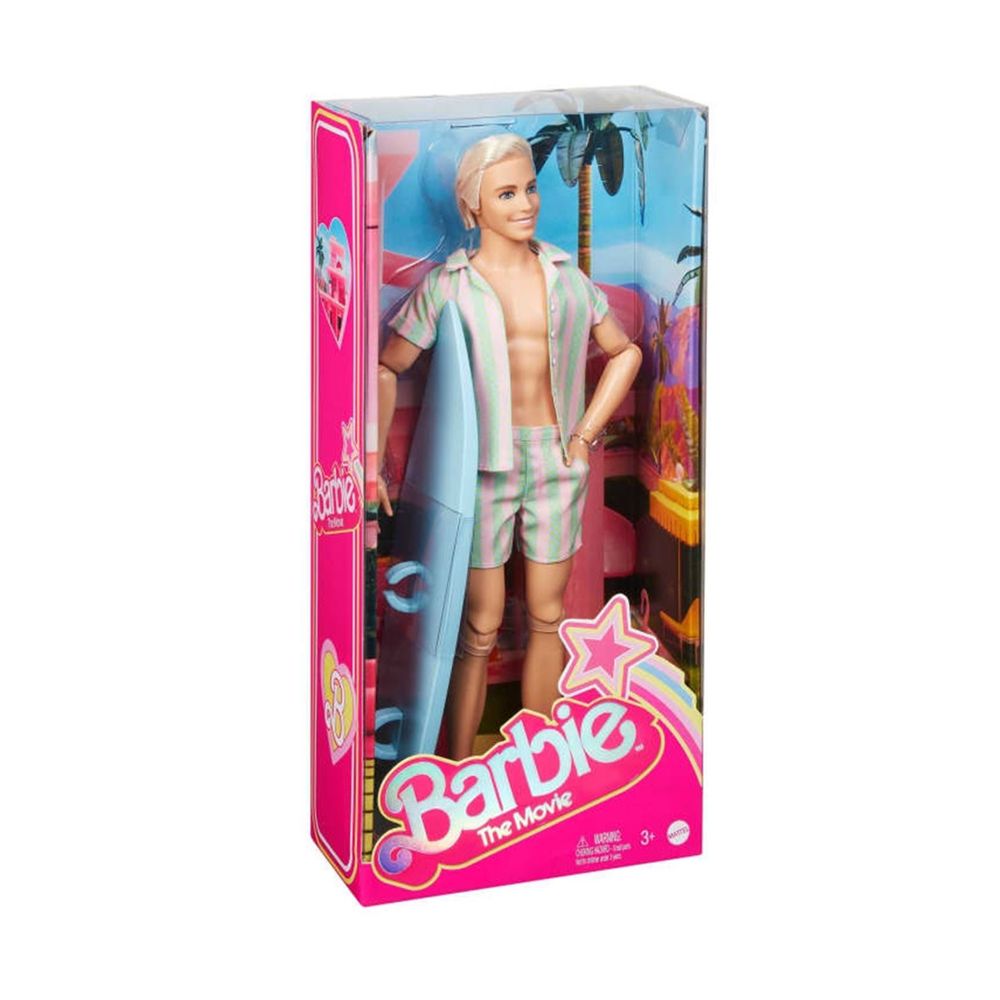 Εμπνευσμένη από τον χαρακτήρα του Ken στην ταινία Barbie, η συλλεκτική κούκλα φοράει ένα ριγέ σύνολο παραλίας. Μαζί με τη σανίδα του σερφ, περνάει την καλύτερη μέρα της ζωής του στην Barbie Land! Τιμώντας την ταινία Barbie, αυτή η κούκλα Ken είναι ένα υπέροχο δώρο για φαν και συλλέκτες.