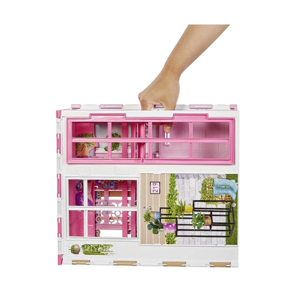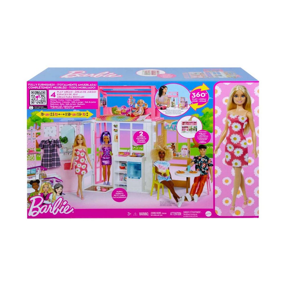 Αυτό το πλήρως επιπλωμένο σπίτι διαθέτει μοντέρνο σχεδιασμό με το χαρακτηριστικό στυλ Barbie και όλα όσα χρειάζονται τα παιδιά για να παίξουν τις ιστορίες τους, συμπεριλαμβανομένης της κούκλας Barbie και του αξιολάτρευτου κουταβιού της.