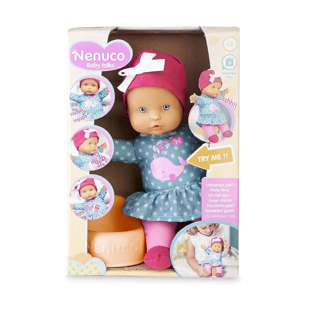 Ένα τρυφερό μωράκι που ζητά τη φροντίδα σου! Nenuco κούκλα-μωρό με πολύ μαλακό και ελαφρύ σώμα. Φοράει φορεματάκι & σκουφάκι. Διαθέτει και γιογιό και πατώντας την κοιλίτσα της κάνει 4 διαφορετικούς ήχους.