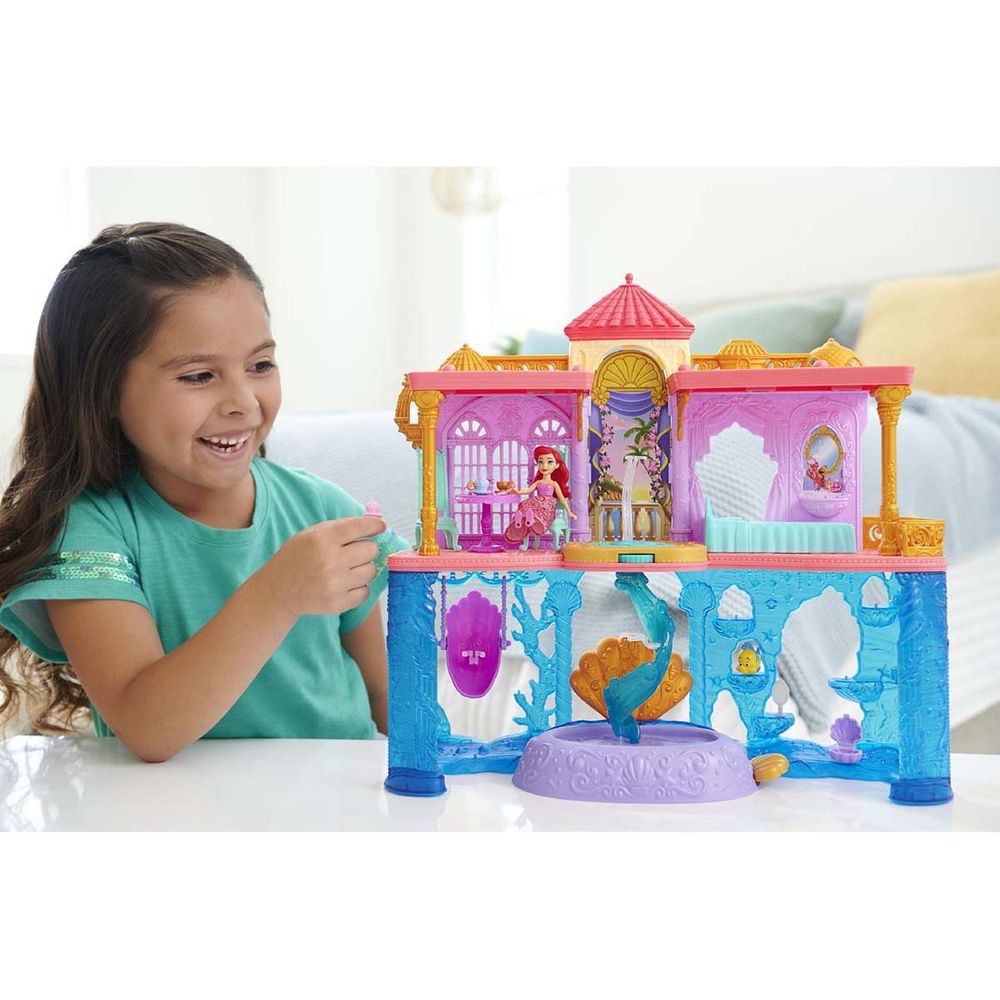 Το Κάστρο της Άριελ θα ενθουσιάσει τους μικρούς φαν της ταινίας της Disney, Η Μικρή Γοργόνα! Σε χαριτωμένο μικρό μέγεθος, το πάνω μέρος του κάστρου είναι ο κόσμος πάνω από τη θάλασσα, ενώ το κάτω μέρος είναι ο κόσμος κάτω από αυτή. Περιλαμβάνει έπιπλα, κομμάτια παιχνιδιού, φιγούρα Φούσκα και κούκλα Άριελ με 2 εμφανίσεις.
