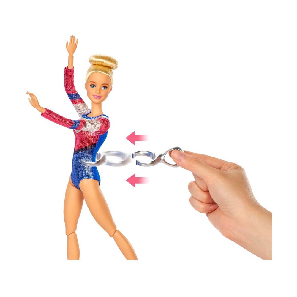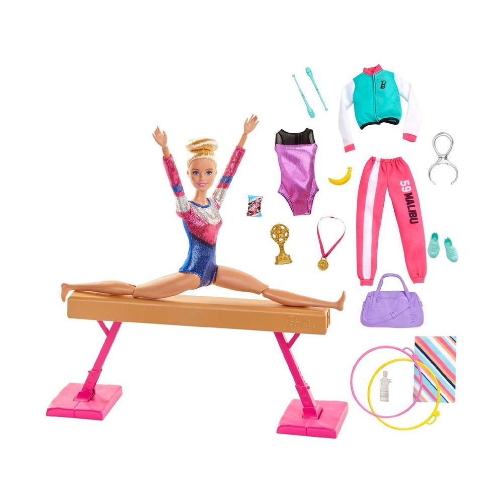 Εξερεύνησε τον κόσμο της ενόργανης γυμναστικής με αυτό το σετ της Barbie! Όταν ένα κορίτσι παίζει με την Barbie, φαντάζεται όσα μπορεί να γίνει όταν μεγαλώσει και αν της αρέσει ο αθλητισμός μπορεί να γίνει γυμνάστρια! Περιλαμβάνει αξεσουάρ γυμναστικής και την κούκλα Barbie Γυμνάστρια με πολύχρωμο κορμάκι. Επίσης περιλαμβάνει ένα επιπλέον κορμάκι, φόρμα, παπούτσια, πετσέτα, σνακ και τσάντα. Για να κάνει το πρόγραμμά της, έχει δοκό ισορροποίας, 2 κρίκους, κλιπ και 2 κορίνες.