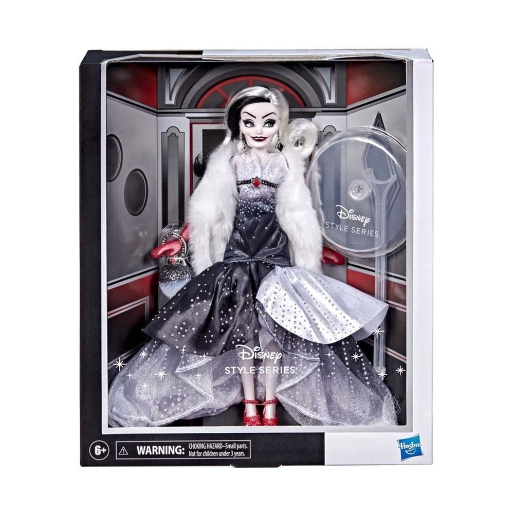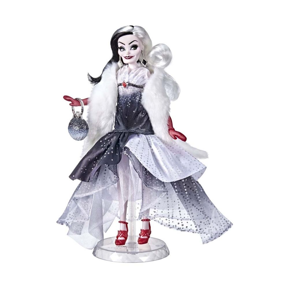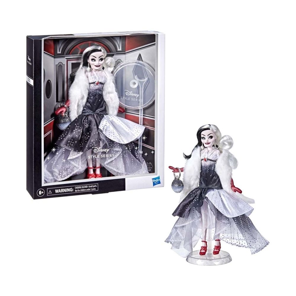 Μέρος της σειράς Disney Villains Style Series, αυτή η συλλεκτική κούκλα φέρνει τον διαβολικό της χαρακτήρα στον σύγχρονο κόσμο της υψηλής μόδας. Η κούκλα Cruella De Vil διαθέτει εντυπωσιακά ασπρόμαυρα μαλλιά και ένα πολυεπίπεδο ombre φόρεμα με αστραφτερές κουκκίδες, σε συνδυασμό με μια πολυτελή ψεύτικη γούνα. Για αξεσουάρ περιλαμβάνει τσαντάκι, σκουλαρίκια, γάντια και αφαιρούμενα παπούτσια.