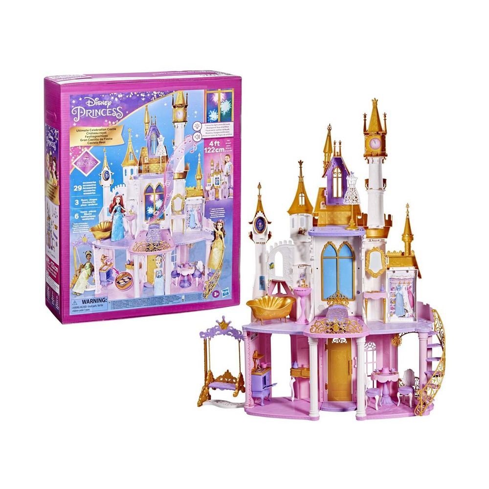 Γιόρτασε μαζί με τις αγαπημένες πριγκίπισσες της Disney στο απόλυτο πριγκιπικό κάστρο Ultimate Celebration Castle! Το εντυπωσιακό αυτό κάστρο της Disney έχει 120cm, κλασικό σχεδιασμό και αποτελείται από 3 ορόφους και 6 δωμάτια! Από το πριγκιπικό κάστρο δεν λείπει τίποτα, αφού στο εσωτερικό του θα βρεις μπάνιο με μπανιέρα και νιπτήρα, πριγκιπικό υπνοδωμάτιο με κρεβάτι και τουαλέτα, υπέροχη κουζίνα με φούρνο και μια εξοπλισμένη τραπεζαρία.