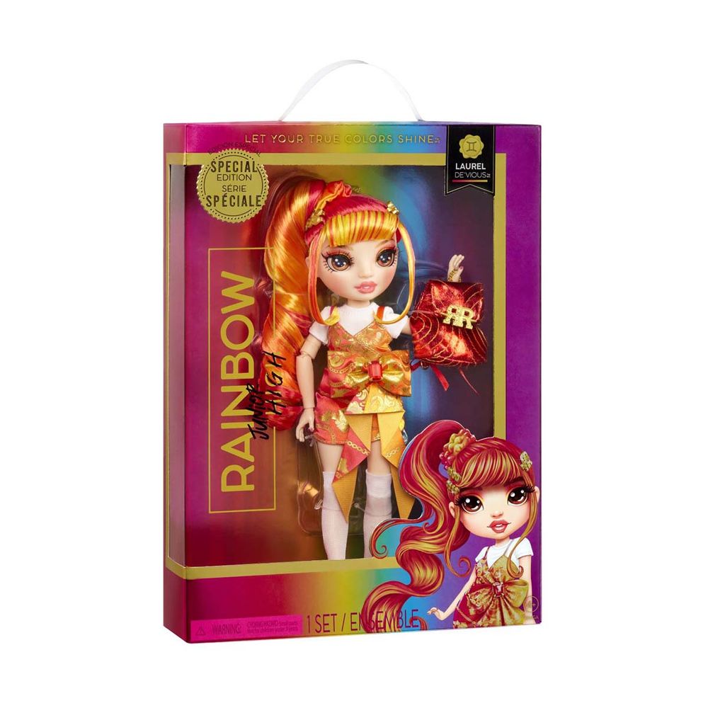 Γνώρισε τις νέες αγαπημένες κούκλες Rainbow High Junior High, τις νεότερες κούκλες των πρώτων χαρακτήρων της σειράς Rainbow High! Όλες έχουν τις δικές τους ιστορίες για το πώς βρήκαν το δημιουργικό τους πάθος πριν γίνουν μαθήτριες του Rainbow High! H κάθε κούκλα Junior High (23cm) είναι εξίσου όμορφη, κομψή και πολύχρωμη με την κούκλα μεγαλύτερου μεγέθους 28cm. Γνώρισε την Laurel De’Vious!