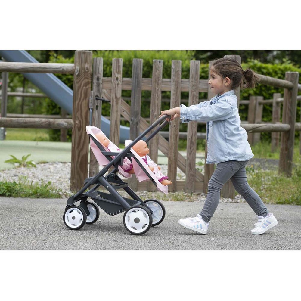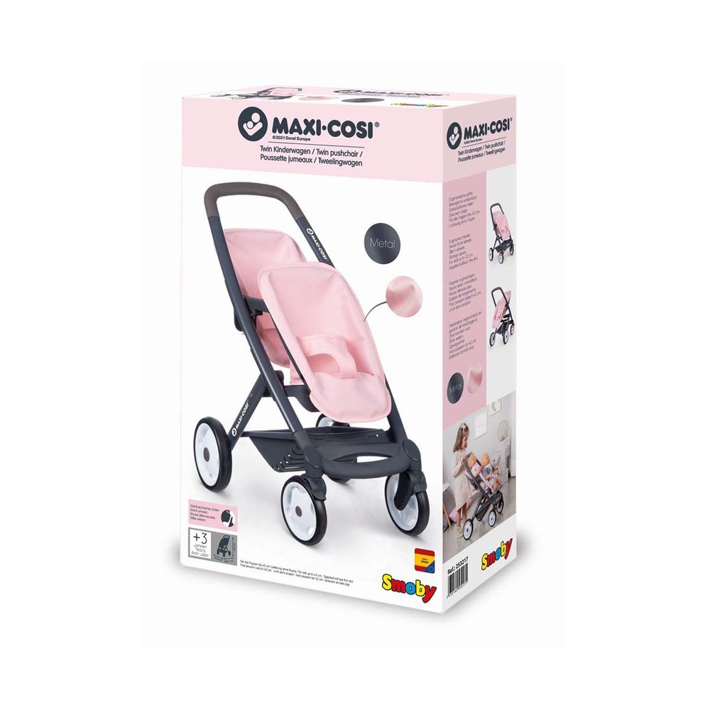 Δίδυμο καροτσάκι Maxi-Cosi & Quinny για 2 κούκλες. Διαθέτει εργονομικές και εύκολες λαβές, πλαστικό κάθισμα επενδυμένο με ύφασμα, 2 θέσεις για τα καθίσματα, περιστρεφόμενους, ελαστικούς και αθόρυβους μπροστινούς τροχούς, καλάθι αποθήκευσης κάτω από το κάθισμα και ζώνη ασφαλείας στο μπροστινό κάθισμα.
