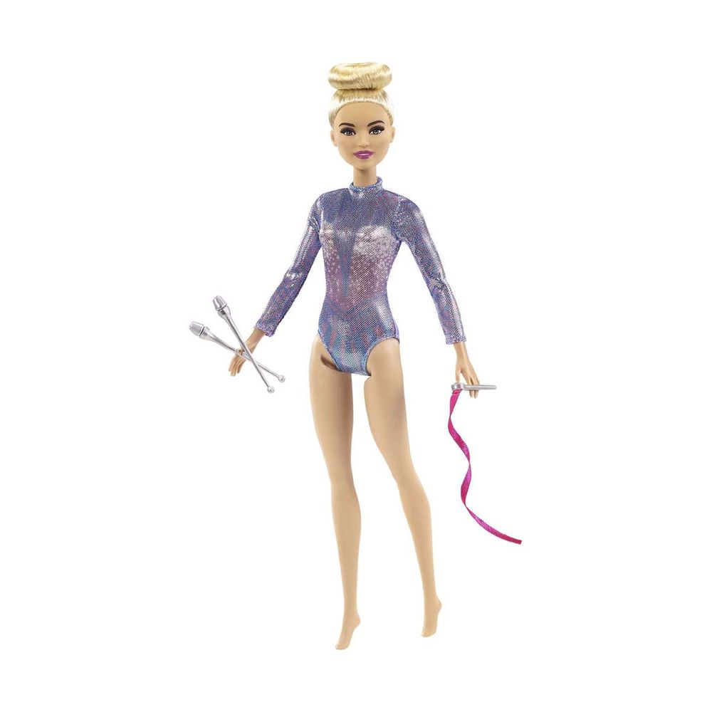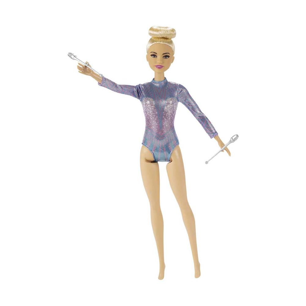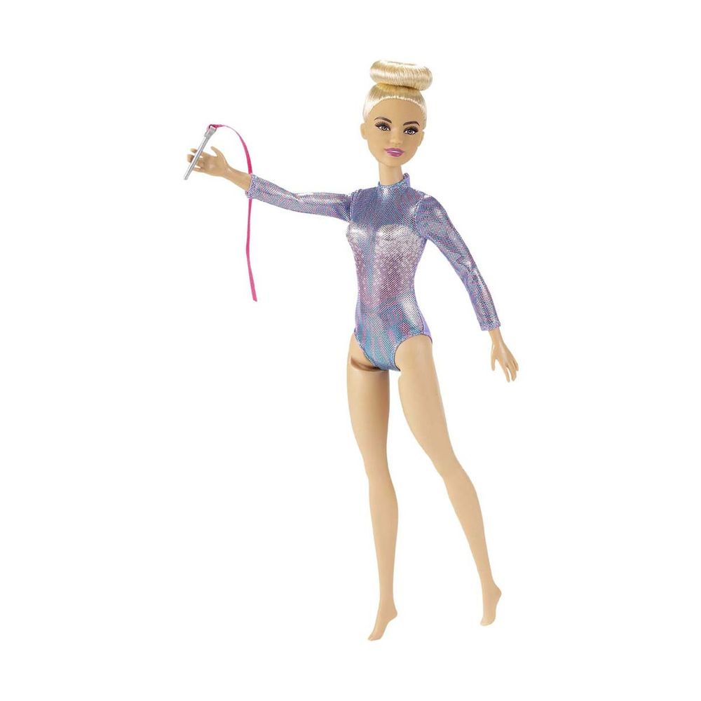 Εξερεύνησε τον συναρπαστικό κόσμο της ρυθμικής γυμναστικής με την κούκλα Barbie Γυμνάστρια! Η κούκλα Barbie Γυμνάστρια (30,40 εκ.) φοράει χρωματιστό μεταλλικό κορμάκι και τα μαλλιά της είναι πιασμένα σε έναν χαριτωμένο κότσο. Με δύο κορίνες και την κορδέλα της, η Barbie είναι έτοιμη να παρουσιάσει το εντυπωσιακό της πρόγραμμα! Η κούκλα δεν μπορεί να σταθεί όρθια από μόνη της. Τα χρώματα και τα σχέδια μπορεί να διαφέρουν.