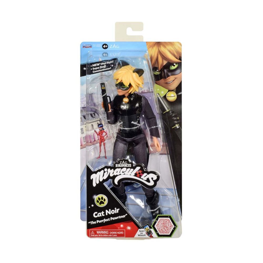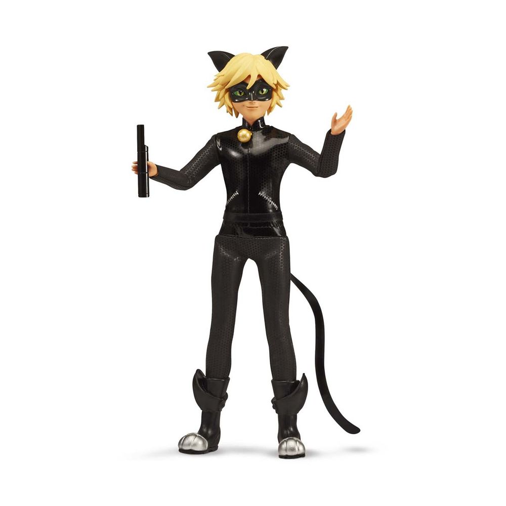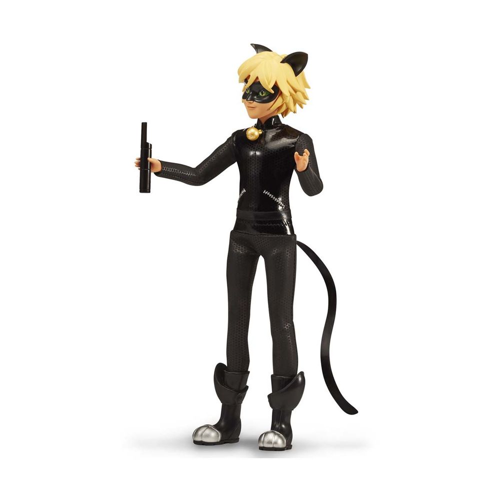 Κούκλα ύψους 27 cm Cat Noir με 13 σημεία αρθρώσεων. Φοράει νέα, γυαλιστερή στολή από βινύλιο ενώ το ραβδί μάχης του γίνεται το μυστικό του τηλέφωνο που ανοίγει, έτοιμος για δράση στο Παρίσι!