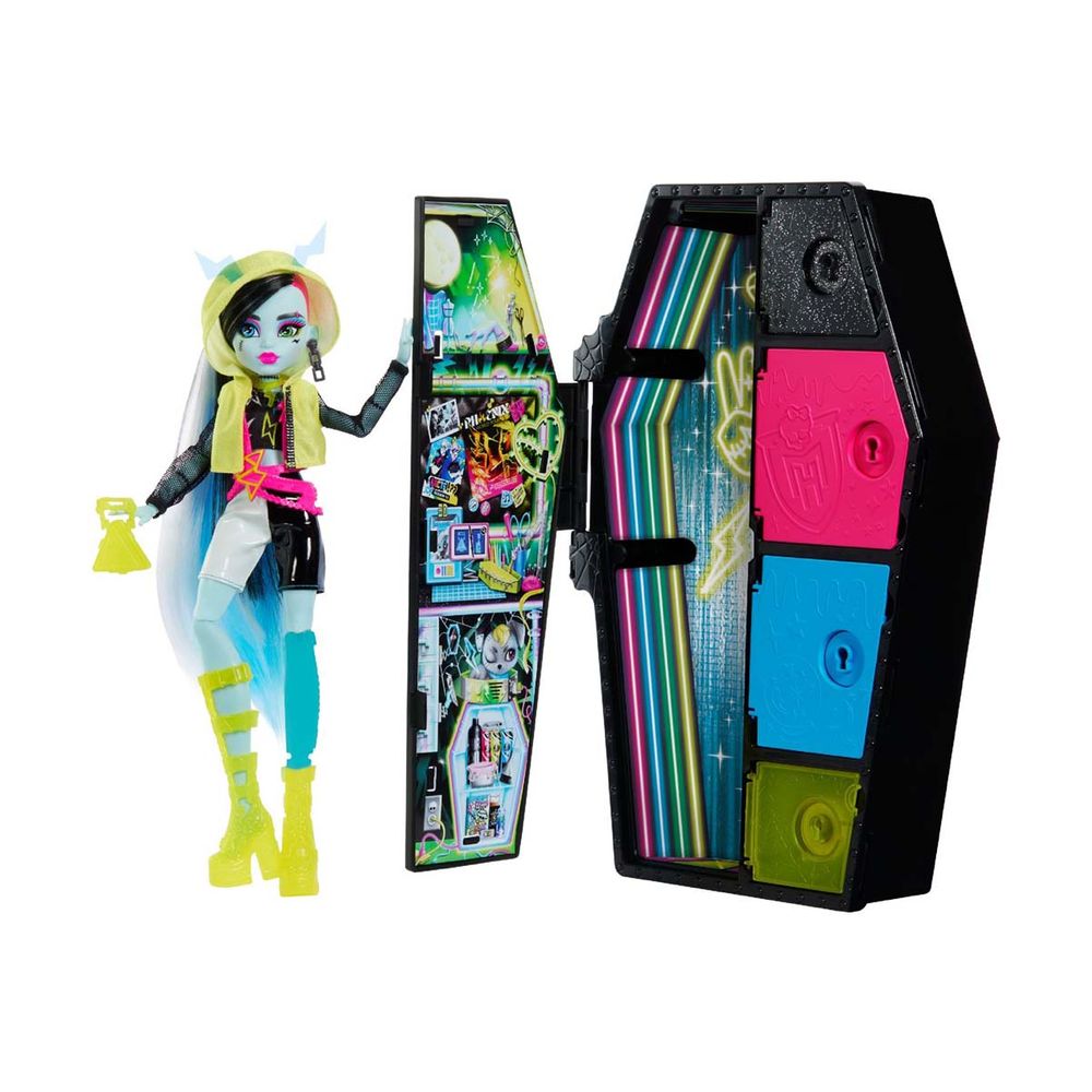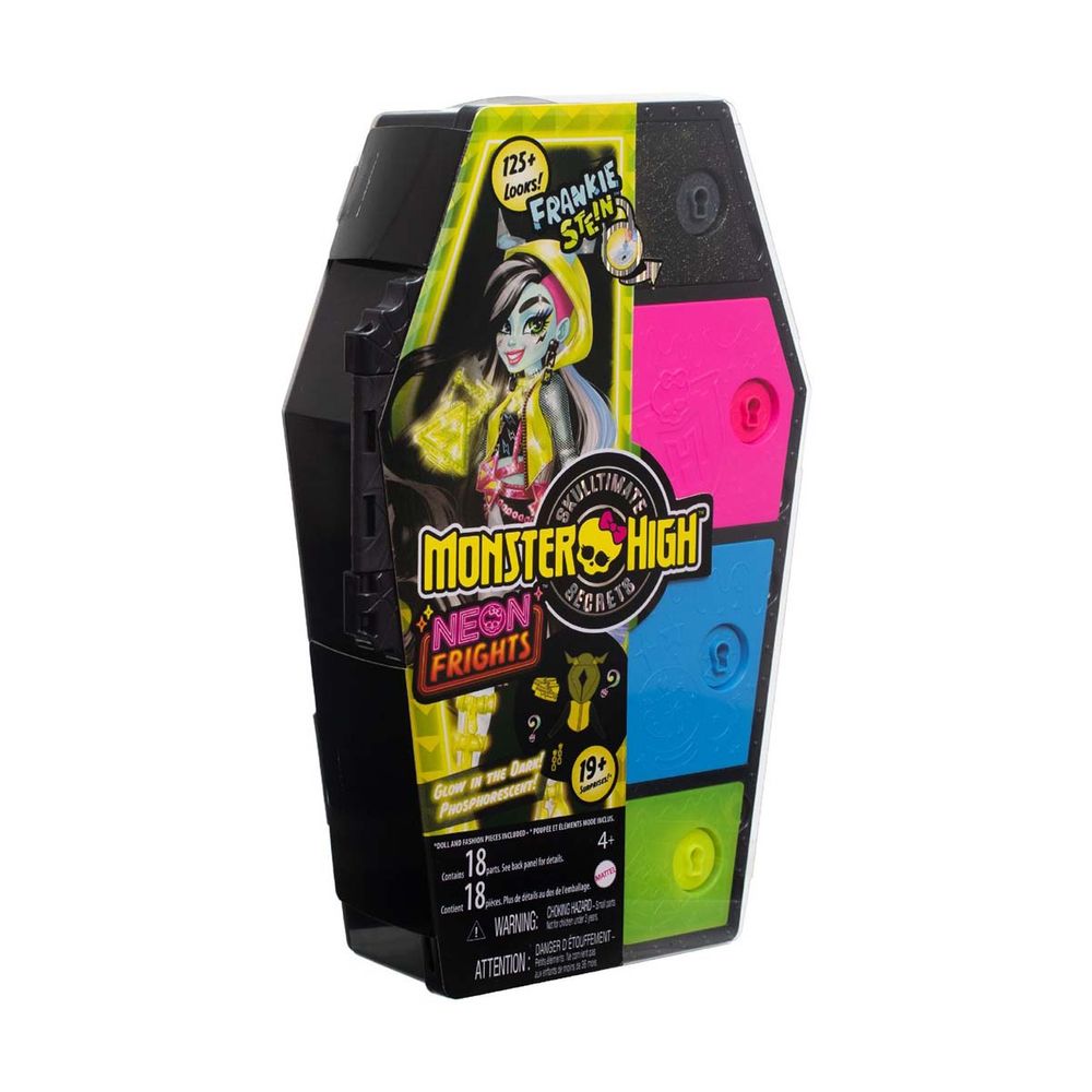 Η σειρά Skulltimate Secrets επιστρέφει με την έκδοση Neon Frights και είναι φαντασμαγορική! Κάθε πολύχρωμο σετ περιλαμβάνει μία κούκλα Monster High και 19+ εκπλήξεις, μεταξύ των οποίων τρία αξεσουάρ που φωσφορίζουν στο σκοτάδι. Η μαγεία Color Reveal και οι διαδοχικές εκπλήξεις της συσκευασίας προσφέρουν την απόλυτη εμπειρία unboxing, ενώ η ντουλάπα σε σχήμα φέρετρο εμπνέει τη δημιουργία απίθανων ιστοριών και είναι τέλεια για την αποθήκευση των αξεσουάρ!