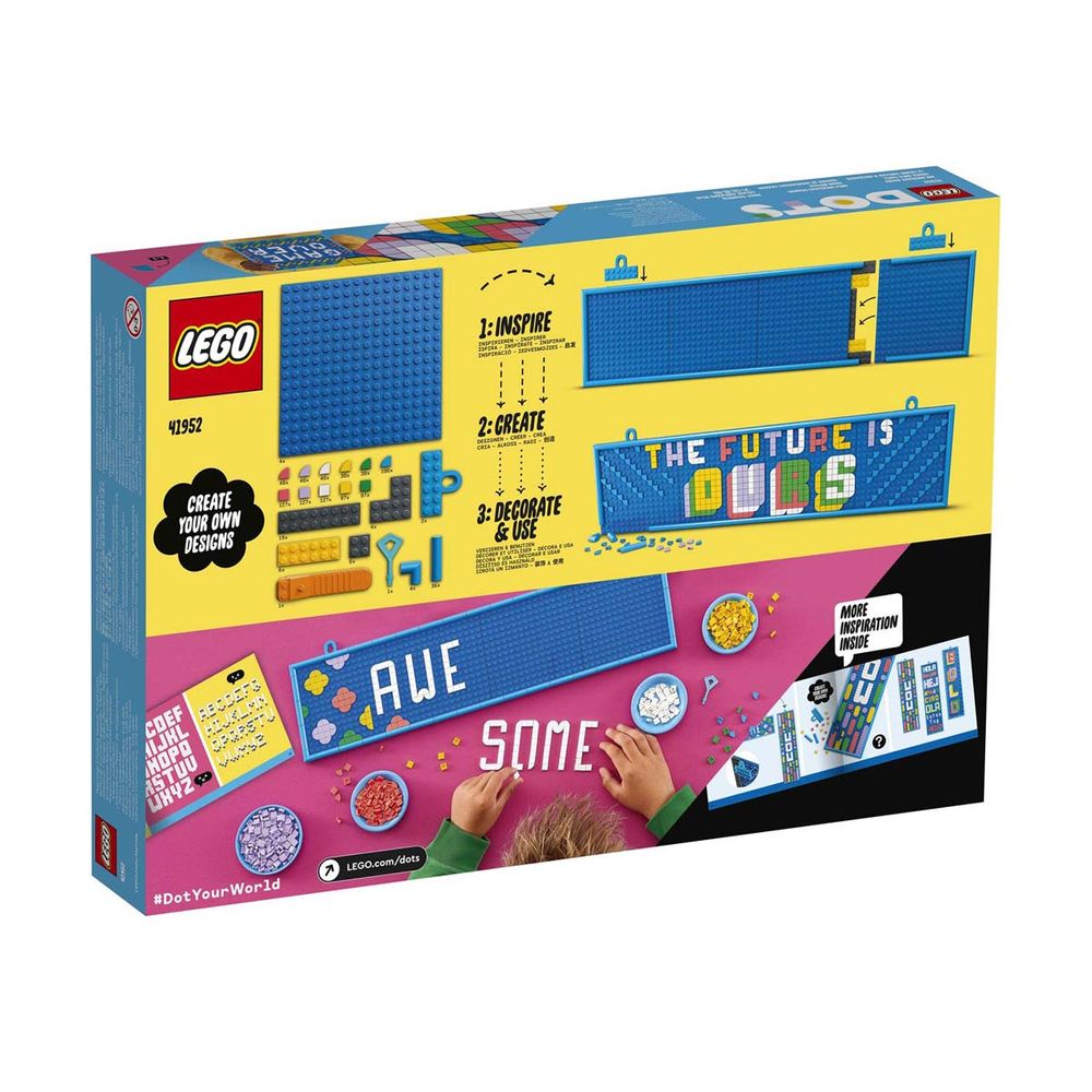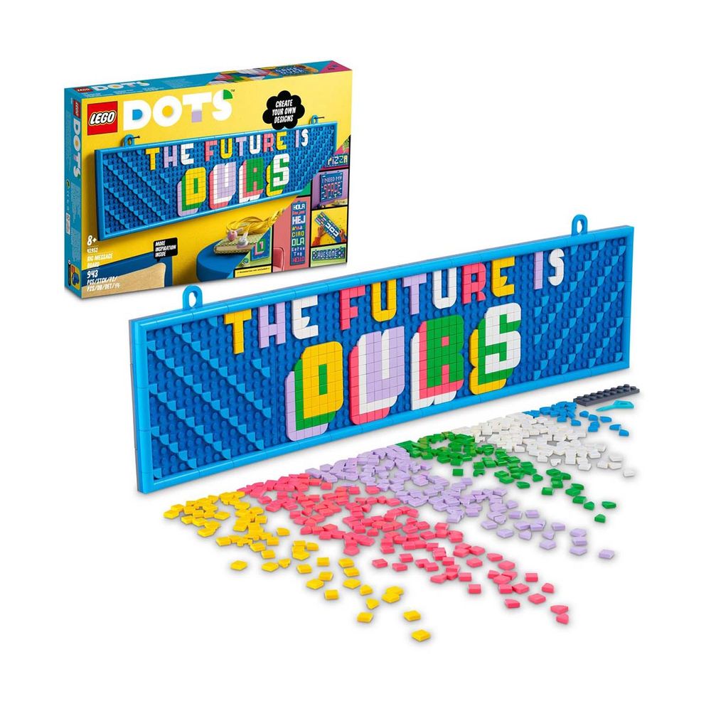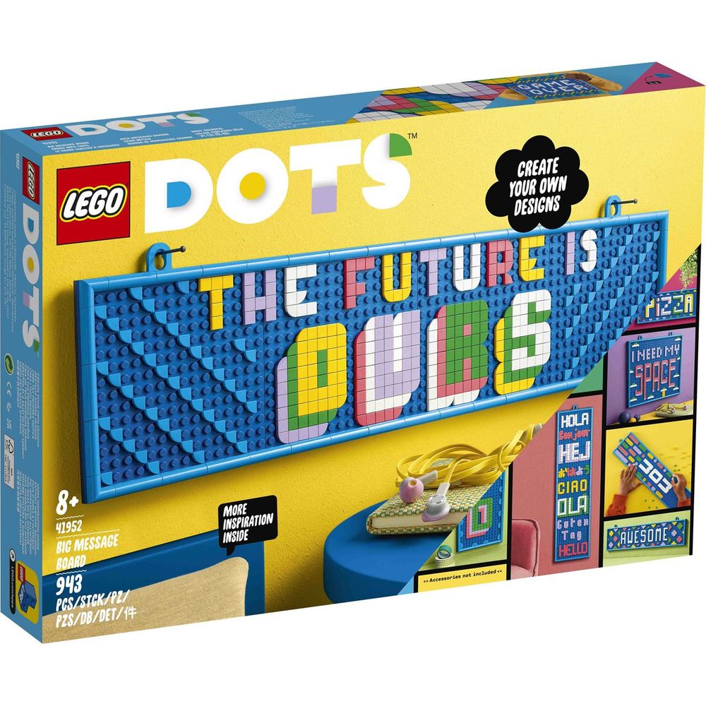 Μοιράσου το μήνυμά σου με κουλ νέους τρόπους με τον LEGO® Dots μεγάλο πίνακα μηνυμάτων. Σύνδεσε τις βάσεις με τα στοιχεία κορνίζας, δημιούργησε σχέδια και μηνύματα με τα συμπεριλαμβανόμενα πλακάκια και κρέμασέ τον όπου θέλεις.