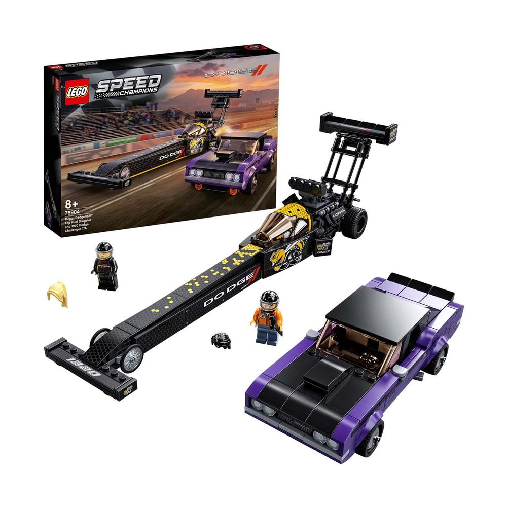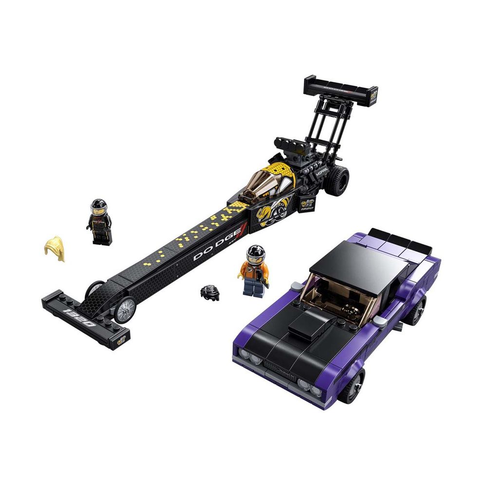 Ετοιμάσου για επική αγωνιστική δράση με 2 θρυλικά οχήματα, το σούπερ γρήγορο ντράγκστερ Mopar Dodge SRT Top Fuel Dragster και το τρομερό muscle car Dodge Challenger T/A του 1970. Αυτά τα εκπληκτικά αντίγραφα είναι τώρα δικά σου για να τα κατασκευάσεις, να τα εξερευνήσεις και να τα προσθέσεις στη συλλογή σου. Και με 2 μίνι φιγούρες οδηγών εξοπλισμένους και έτοιμους να φύγουν, το σκηνικό είναι έτοιμο για έναν αγώνα γεμάτο δράση και τέρμα το γκάζι.
