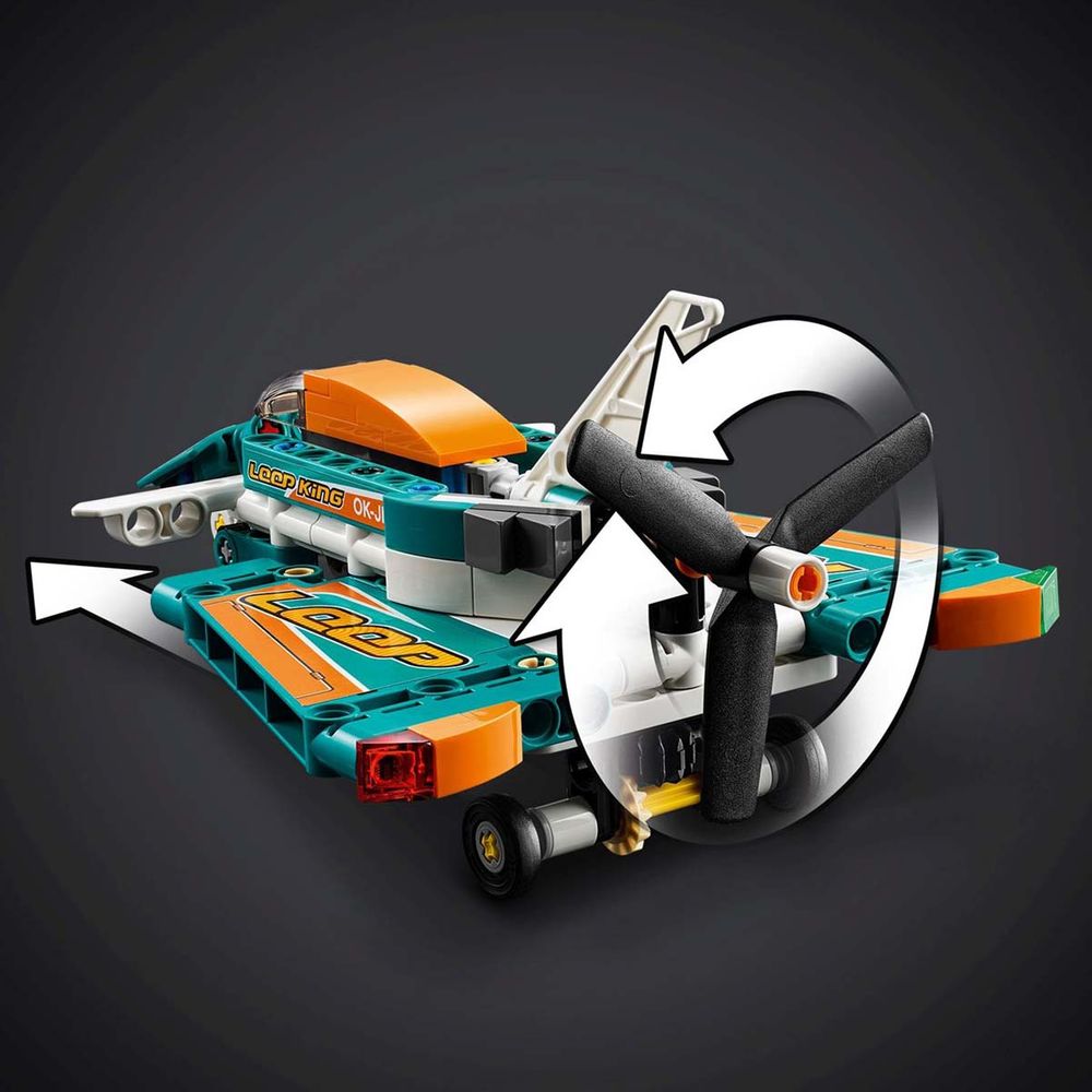 Ανέβα στους ουρανούς με αυτό το φοβερό LEGO® Technic Αγωνιστικό Αεροπλάνο. Ρίξε μια ματιά στα εντυπωσιακά χρώματα και τα αυτοκόλλητα των χορηγών, ακριβώς όπως σε ένα πραγματικό αγωνιστικό αεροπλάνο. Οδήγησέ το στο έδαφος καθώς ετοιμάζεσαι για απογείωση και δες τον έλικα να περιστρέφεται. Στη συνέχεια, αναπαράστησε τους ελιγμούς των κορυφαίων πιλότων του κόσμου. Τώρα μπορείς να ανακατασκευάσεις το Αγωνιστικό Αεροπλάνο σου για να δημιουργήσεις ένα Αεροσκάφος Τζετ.