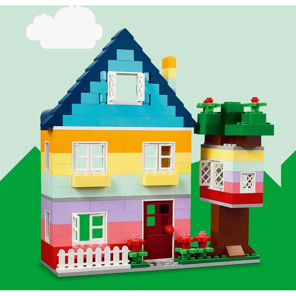 Κατασκεύασε 6 πολύχρωμα σπίτια με διαφορετικά σχέδια, ύψη και σχήματα. Η δημιουργική διασκέδαση συνεχίζεται καθώς προσθέτεις τουβλάκια για να κάνεις τα σπίτια ψηλότερα και ανταλλάζεις πόρτες, παράθυρα, οροφές, κήπους και άλλα για να αλλάξεις το σχέδιο κάθε σπιτιού. Για ακόμα περισσότερες δυνατότητες ρίξε μια ματιά στις 8 ιδέες που περιλαμβάνονται για να κάνεις τα κτίριά σου ακόμα πιο εντυπωσιακά ή συνδύασε πολλά τουβλάκια για να κατασκευάσεις ένα τεράστιο σπίτι!