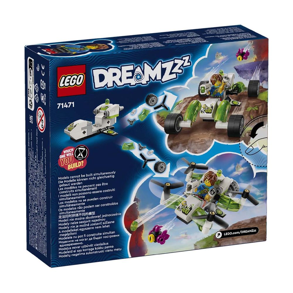 Ένα Μοχθηρόγονο έκλεψε την κλεψύδρα και πρέπει να βοηθήσεις τον Ματέο και τον Ζι-Μπλομπ να την πάρουν πίσω με αυτό το cool όχημα! Αποφάσισε αν θα κατασκευάσεις το LEGO® DREAMZzz™ Εκτός Δρόμου Αυτοκίνητο του Ματέο ως buggy ή τετρακόπτερο. Σε διαμόρφωση buggy, γίνεται ένα στιβαρό εκτός δρόμου όχημα, και στη διαμόρφωση τετρακόπτερου, γίνεται ελικόπτερο με πανίσχυρους πίσω κινητήρες. Το κυνήγι για την κλεψύδρα ξεκίνησε!