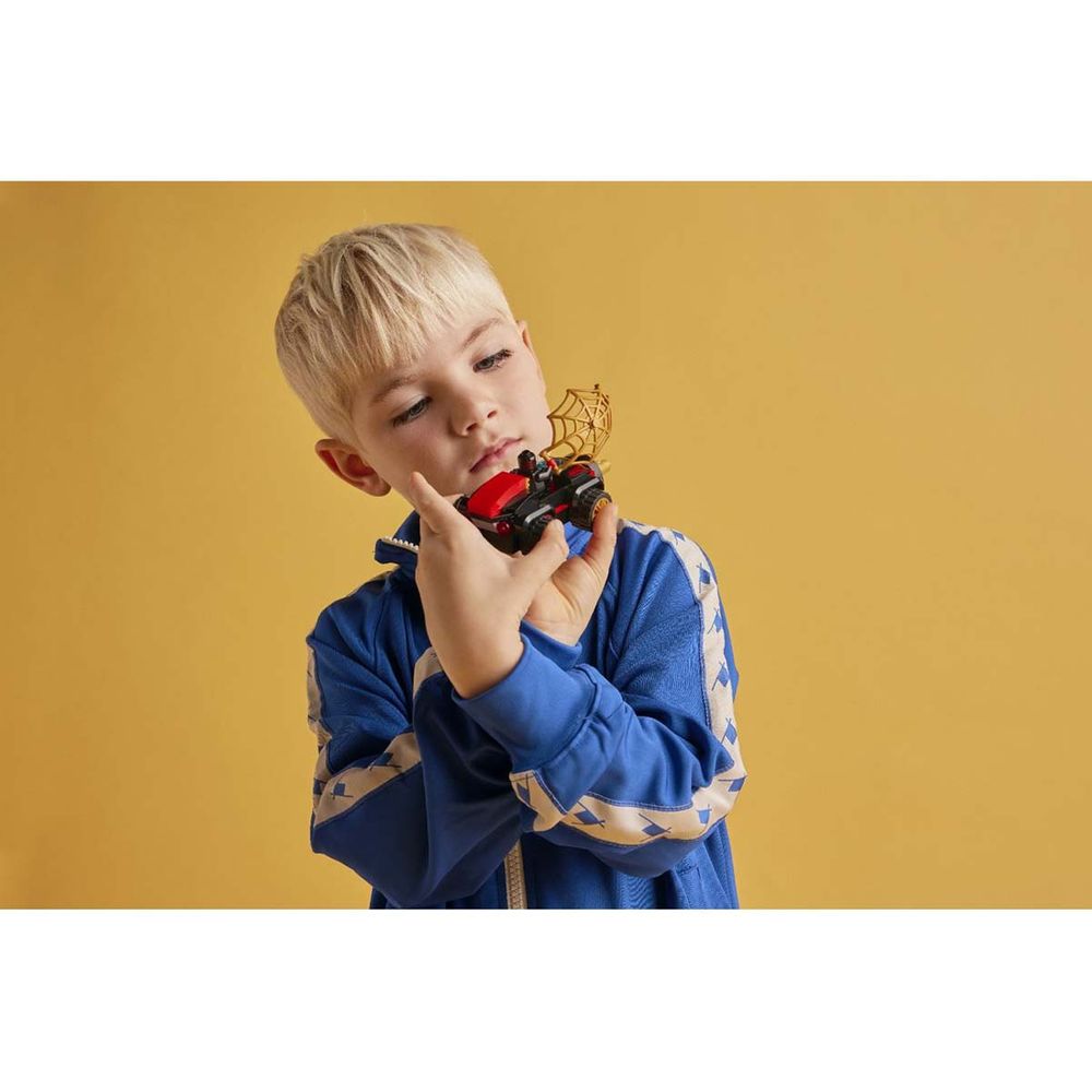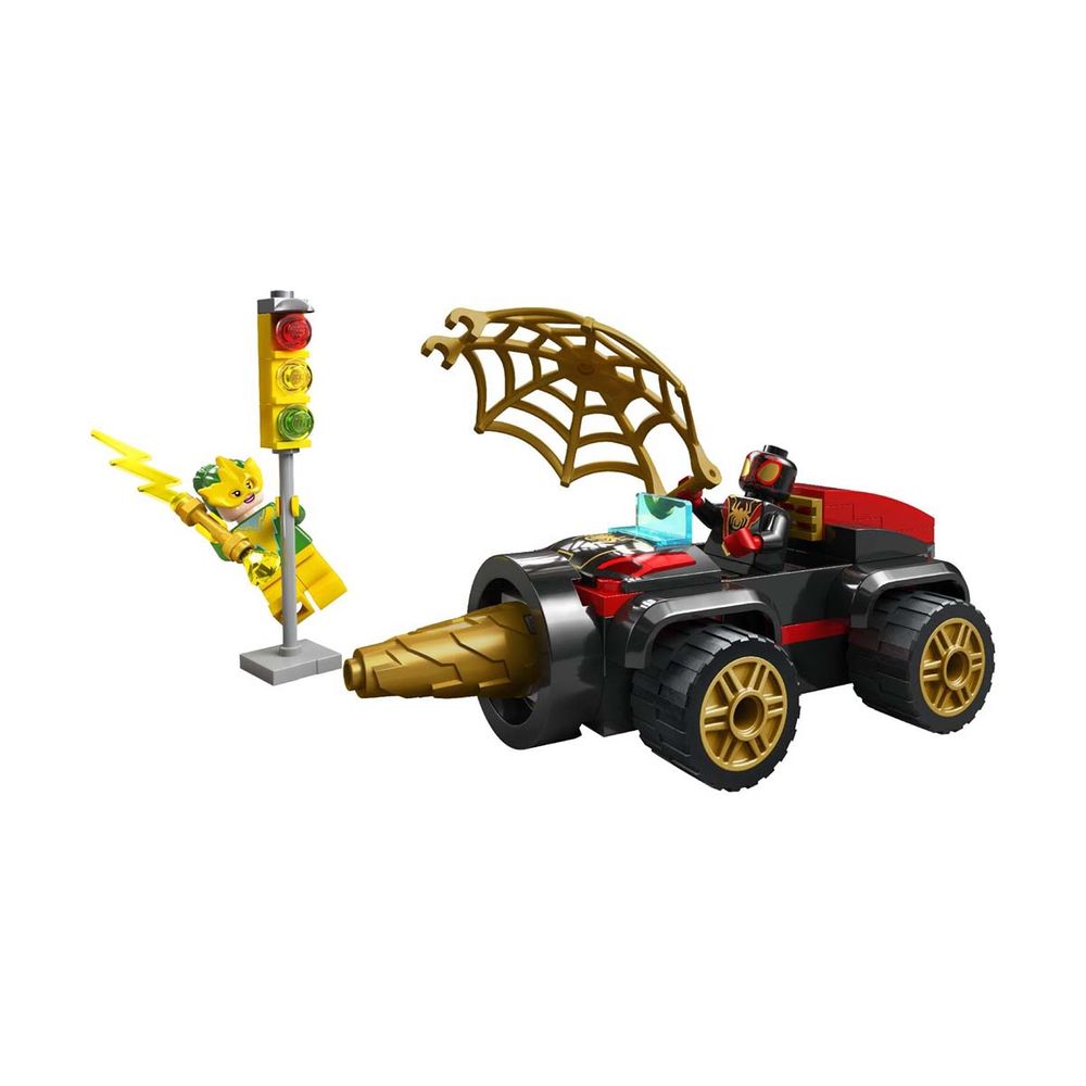 Ο Ελέκτρο βραχυκυκλώνει ένα φανάρι κυκλοφορίας με έναν ηλεκτρικό κεραυνό για να κλέψει ηλεκτρισμό! Ο Σπιν τρέχει επί τόπου με το απίθανο LEGO Όχημα Γεωτρύπανο. Το περιστρεφόμενο τρυπάνι στο μπροστινό μέρος φροντίζει να απομακρύνει κάθε εμπόδιο! Όταν ο Σπιν εκτοξεύει έναν τεράστιο, χρυσό ιστό πάνω από τον υψηλής τάσης κακό, είναι σειρά του Ελέκτρο να πάθει ηλεκτροσόκ!