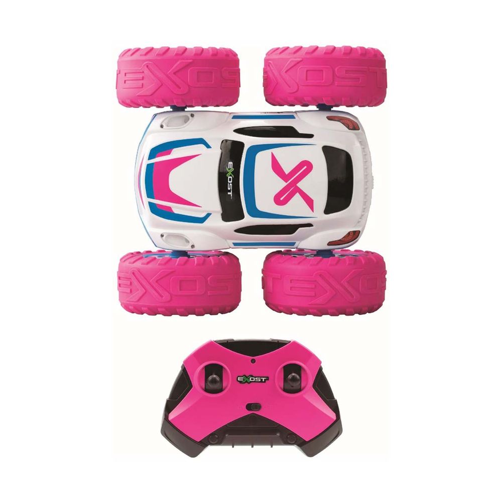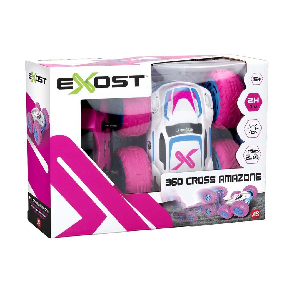 Απίθανο τηλεκατευθυνόμενο αυτοκίνητο 360 Cross από την Exost, που αψηφάει όλα τα εμπόδια με κίνηση 360 μοίρες στο πιο girly, ροζ χρώμα. Έχει απίστευτη επιτάχυνση και σύστημα 2.4GHz που υποστηρίζει πολλαπλούς παίκτες για ακόμα μεγαλύτερη διασκέδαση. Πολύ ανθεκτικά λάστιχα που απορροφούν όλους τους κραδασμούς. LED φώτα και μοναδικός urban σχεδιασμός! Οδήγηση και στις 2 πλευρές για να μην το σταματάει κανένα εμπόδιο!\n