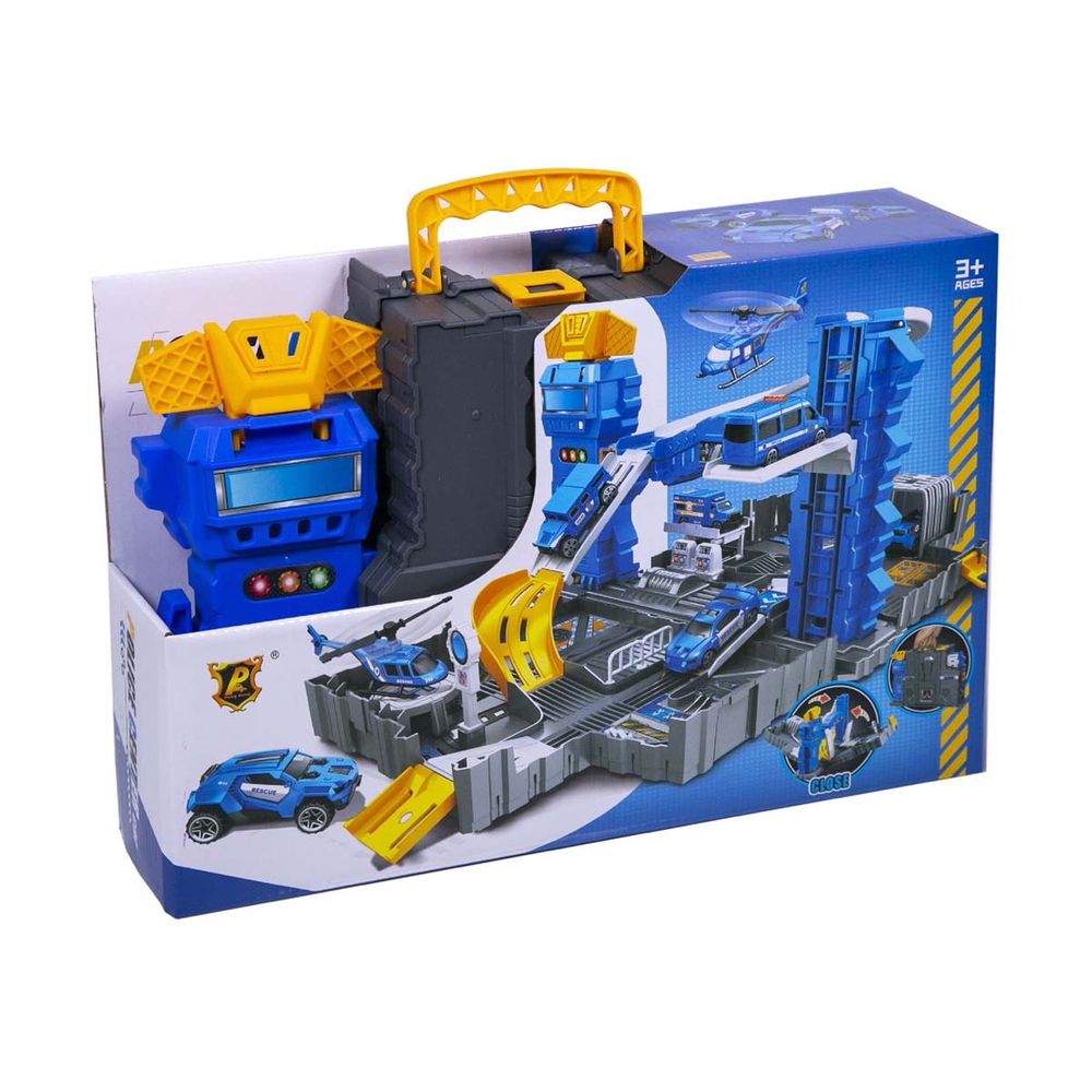 Γκαράζ αστυνομίας σε βαλιτσάκι για να ξεκινάει η διασκέδαση όπου και αν είσαι. Βαλιτσάκι που όταν ανοίγει μεταμορφώνεται σε γκαραζ αστυνομίας με δύο οχήματα. Τα οχήματα ανεβαίνουν από το ασανσέρ και κατεβαίνουν από την πίστα για να ενταπεξέλθουν στις κλήσεις της αστυνομίας.