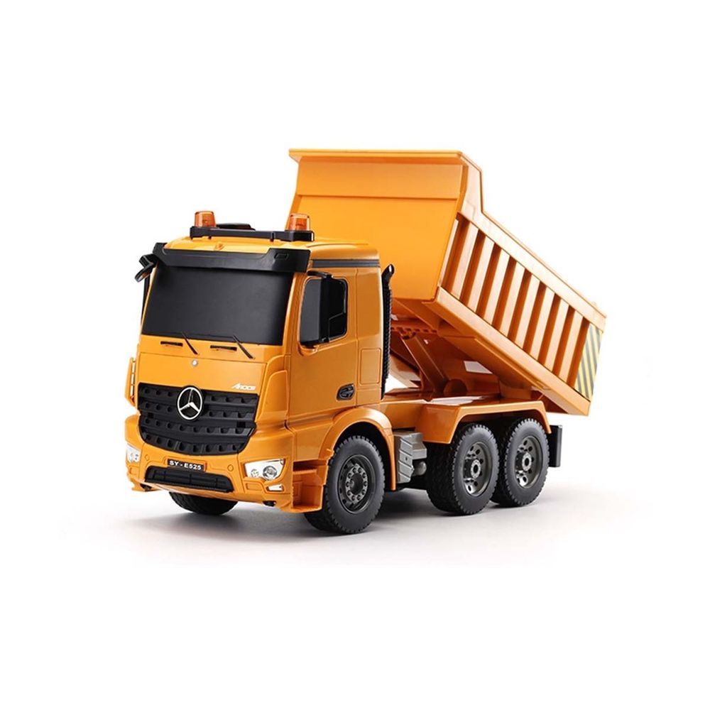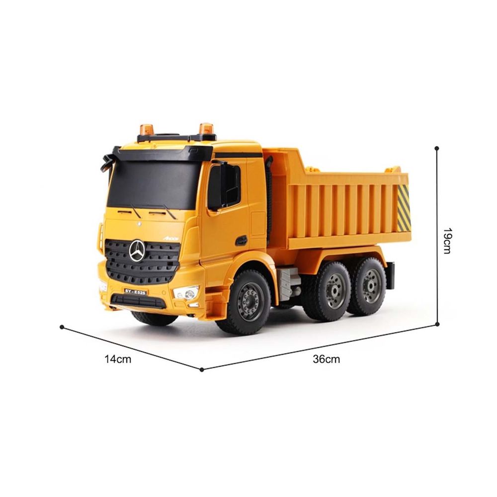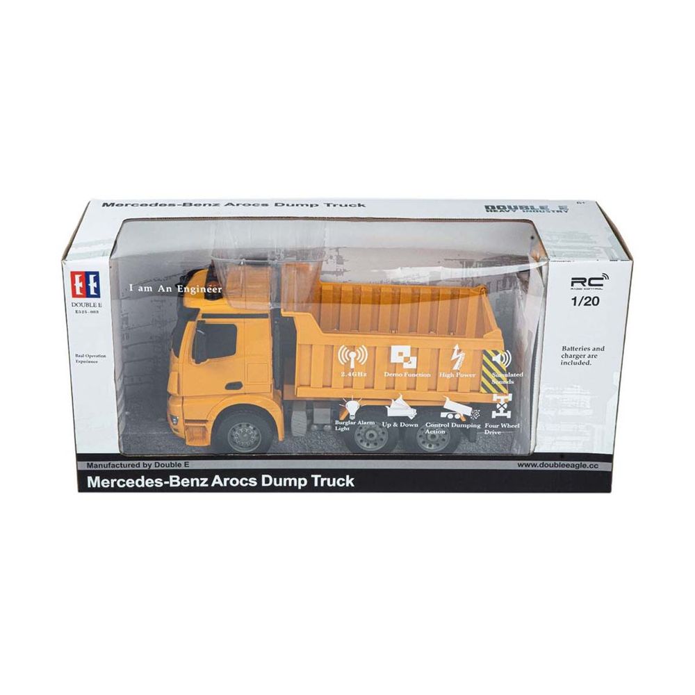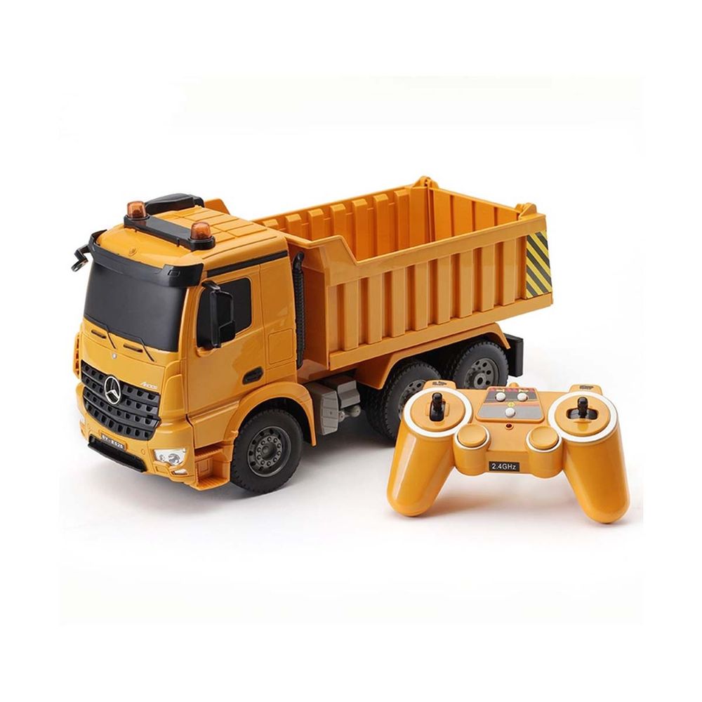 Τηλεκατευθυνόμενη Νταλίκα Mercedes-Benz κλίμακας 1:20 σε κίτρινο χρώμα για ατελείωτη διασκέδαση. Κινείται μπροστά και πίσω και έχει την δυνατότητα να στρίψει αριστερά και δεξιά. Μπορεί να ανυψωθεί ή να χαμηλωθεί η καρότσα μέσω του ασύρματου χειριστηρίου. Θα προσφέρει! Η νταλίκα περιλαμβάνει μπαταρία 4,8V/ 400 mAh επαναφορτιζόμενη, όπου παρέχεται το USB-καλώδιο φόρτισης, ενώ το χειριστήριο του απαιτεί 2ΑΑ μπαταρίες για την χρήση του (δεν περιλαμβάνονται).