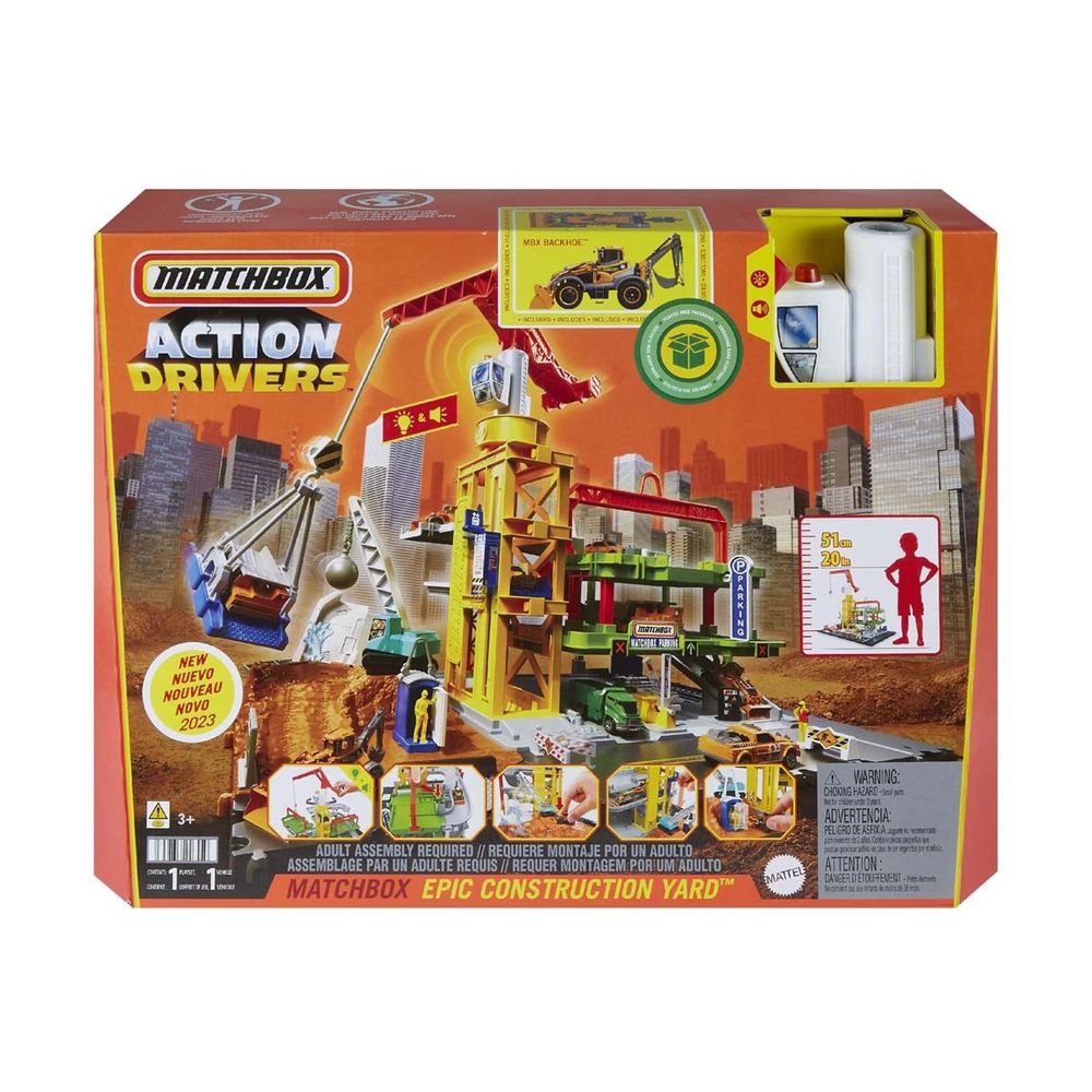 Ανάλαβε το Matchbox Epic Construction Yard που διαθέτει λειτουργίες που ενεργοποιούνται από παιδιά και αυτοκίνητο, φώτα και ήχους και συναρπαστικές λεπτομέρειες που τα παιδιά θα αναγνωρίσουν από την πραγματική ζωή. Σύνδεσε ένα από τα τρία αξεσουάρ, όπως ένα κιβώτιο φορτίου, μια πλατφόρμα και ένα port-a-potty στον μέγα γερανό ύψους 20' και μετακίνησε τα στη θέση τους, ενεργοποιώντας τα φώτα και τους ήχους στη διαδικασία.