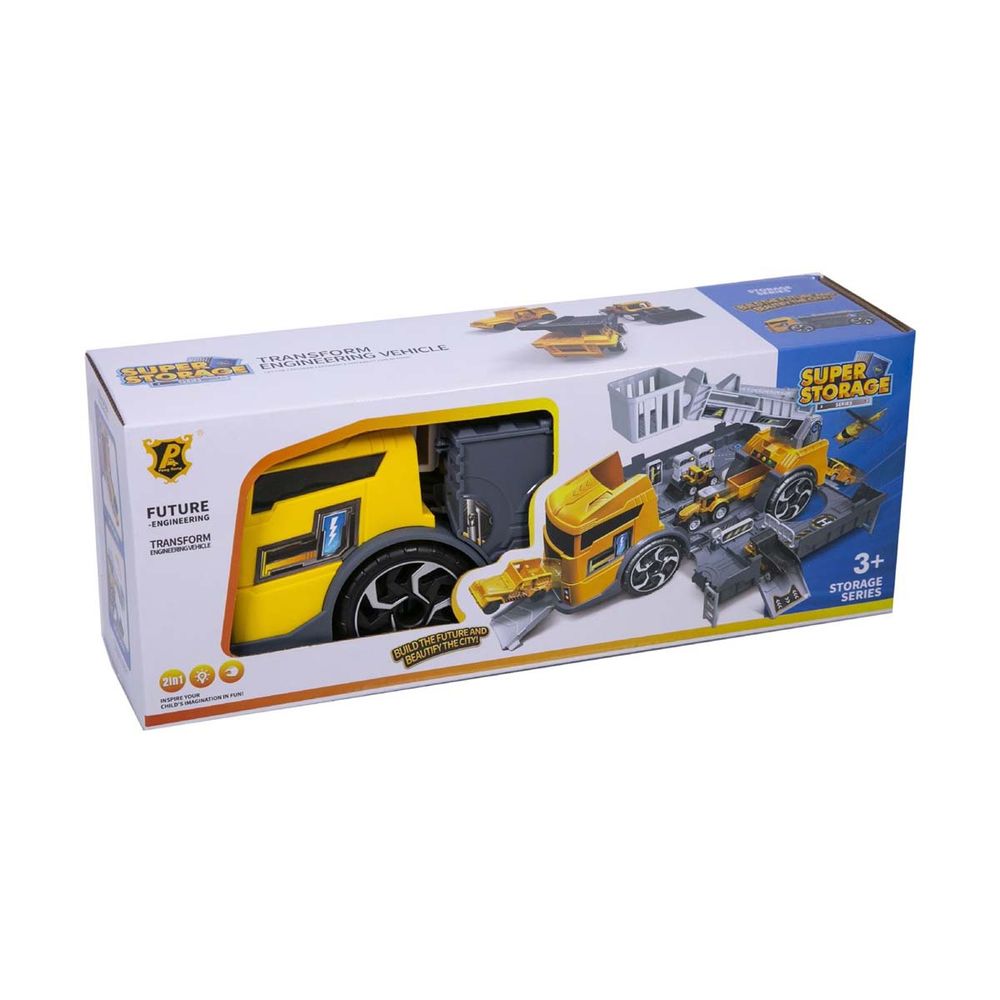 Η νταλίκα 2 σε 1 είναι ένα όχημα με κινούμενη σκάλα αλλά και ένας σταθμός όπου σταθμεύουν τα οχήματα εργοταξίου μέχρι να ξεκινήσουν ξανά τις οικοδομικές εργασίες. Ανεβαίνουν από την πίσω ράμπα και με ταχύτητα βγαίνουν από την μπροστινή μεριά της νταλίκας. Η συσκευασία περιλαβάνει αυτοκόλλητα για να φτιάξεις ένα πραγματικό γκαράζ και 2 οχήματα. Εμπνέει ώρες φανταστικού παιχνιδιού, διεγείρει τη φαντασία, την οπτική αντίληψη και βελτιώνει τις κινητικές δεξιότητες.