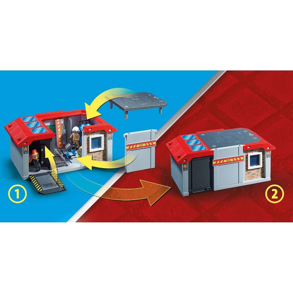Ο πυροσβεστικός σταθμός της PLAYMOBIL® περιλαμβάνει ελικοδρόμιο, μηχανή, δύο πυροσβέστες και ένα γκαράζ για τα πυροσβεστικά οχήματα. Σε πρακτική συσκευασία βαλιτσάκι, για να το έχεις πάντα μαζί.