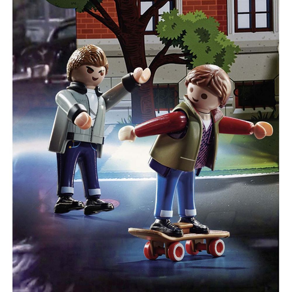 Με χαρακτήρες από το 1955 και το 1985, καθώς και πολλά αξεσουάρ για την αναδημιουργία διάσημων σκηνών από τις ταινίες. Περιλαμβάνει σκηνικό που αναπαριστά το δημαρχείο με τον πύργο ρολογιού του Hill Valley και συλλεκτική τρισδιάστατη, φακοειδή κάρτα.