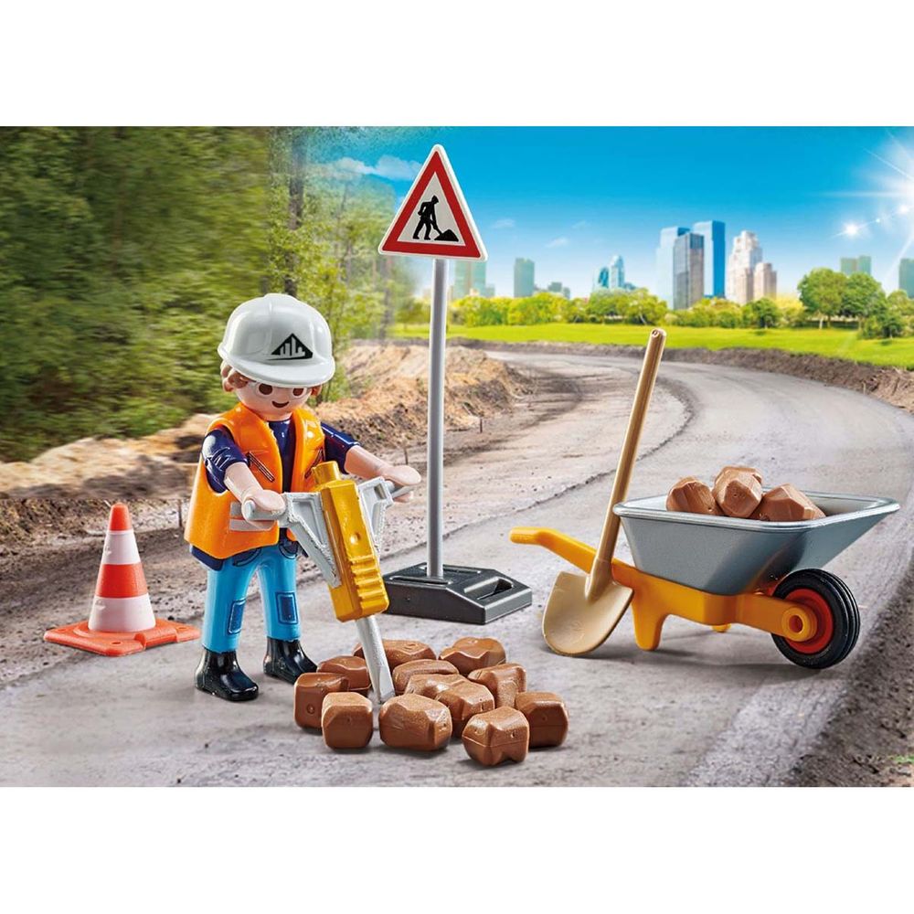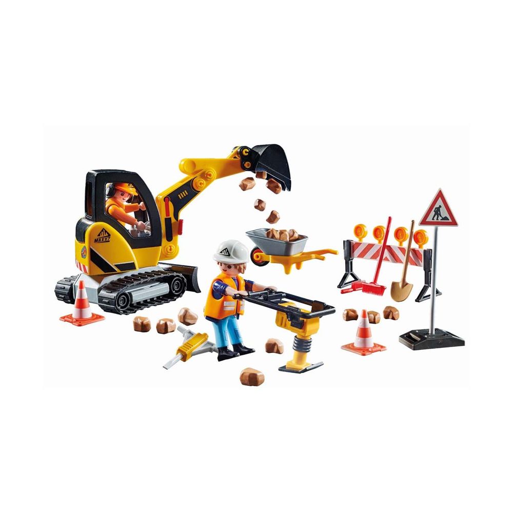 Τα έργα στον δρόμο είναι σε εξέλιξη. Τι λες να βάλεις κι εσύ ένα χεράκι, για να τελειώσουν πιο γρήγορα; Με το σετ της Playmobil μπορείς να γίνεις ο καλύτερος κατασκευαστής δρόμων! Η συσκευασία περιλαμβάνει εκσκαφέα, τρυπάνι και προειδοποιητικές σημάνσεις οδών.