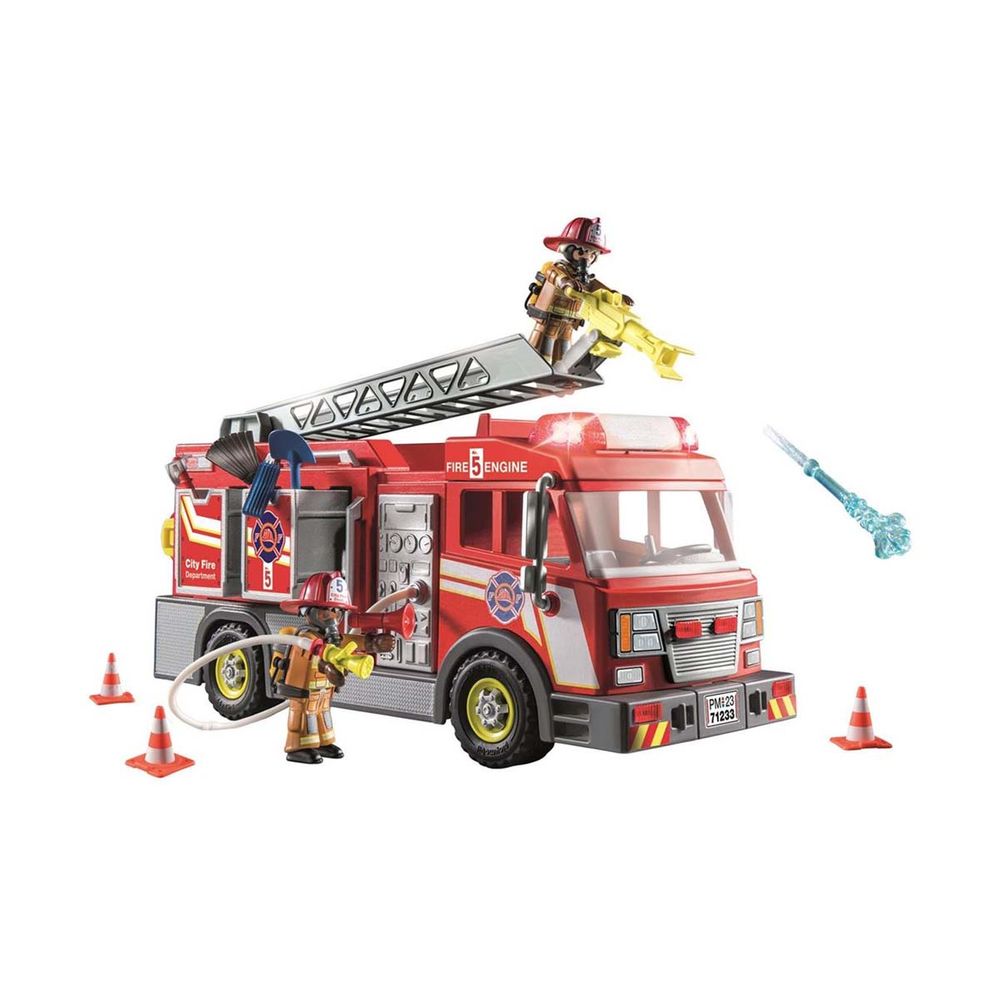Το Πυροσβεστικό όχημα είναι εξοπλισμένο με κανόνι νερού που λειτουργεί, φάρο και σειρήνα. Με άφθονο αποθηκευτικό χώρο για τον εξοπλισμό. Περιλαμβάνει δύο φιγούρες Playmobil.