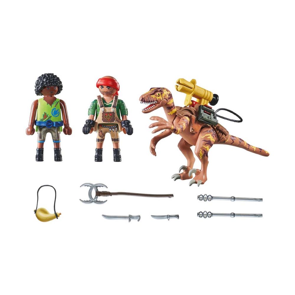 Δεινόνυχος εξοπλισμένος με πυροβόλο όπλο και εξερευνητές Playmobil με πολλά αξεσουάρ για ατελείωτη διασκέδαση. Δημιούργησε τις δικές σου ιστορίες με τους δεινόσαυρους από την Playmobil.