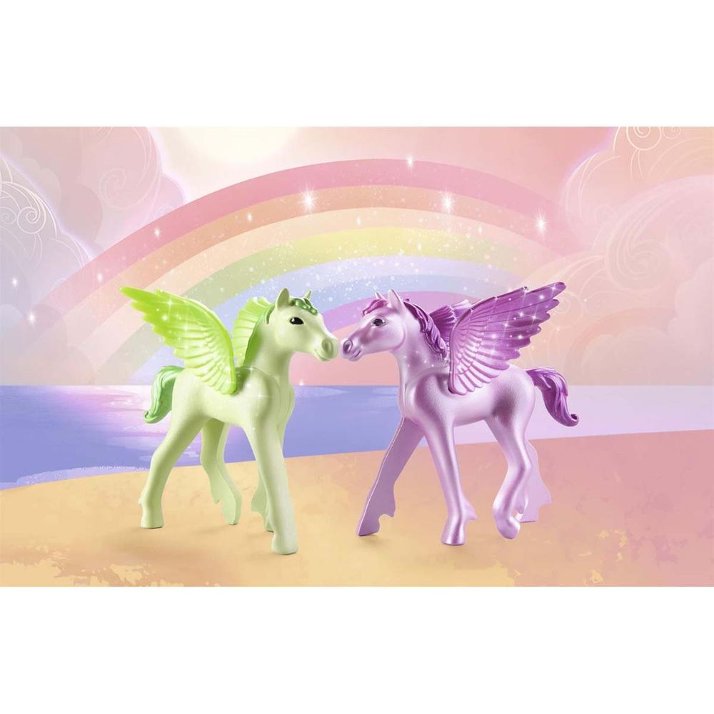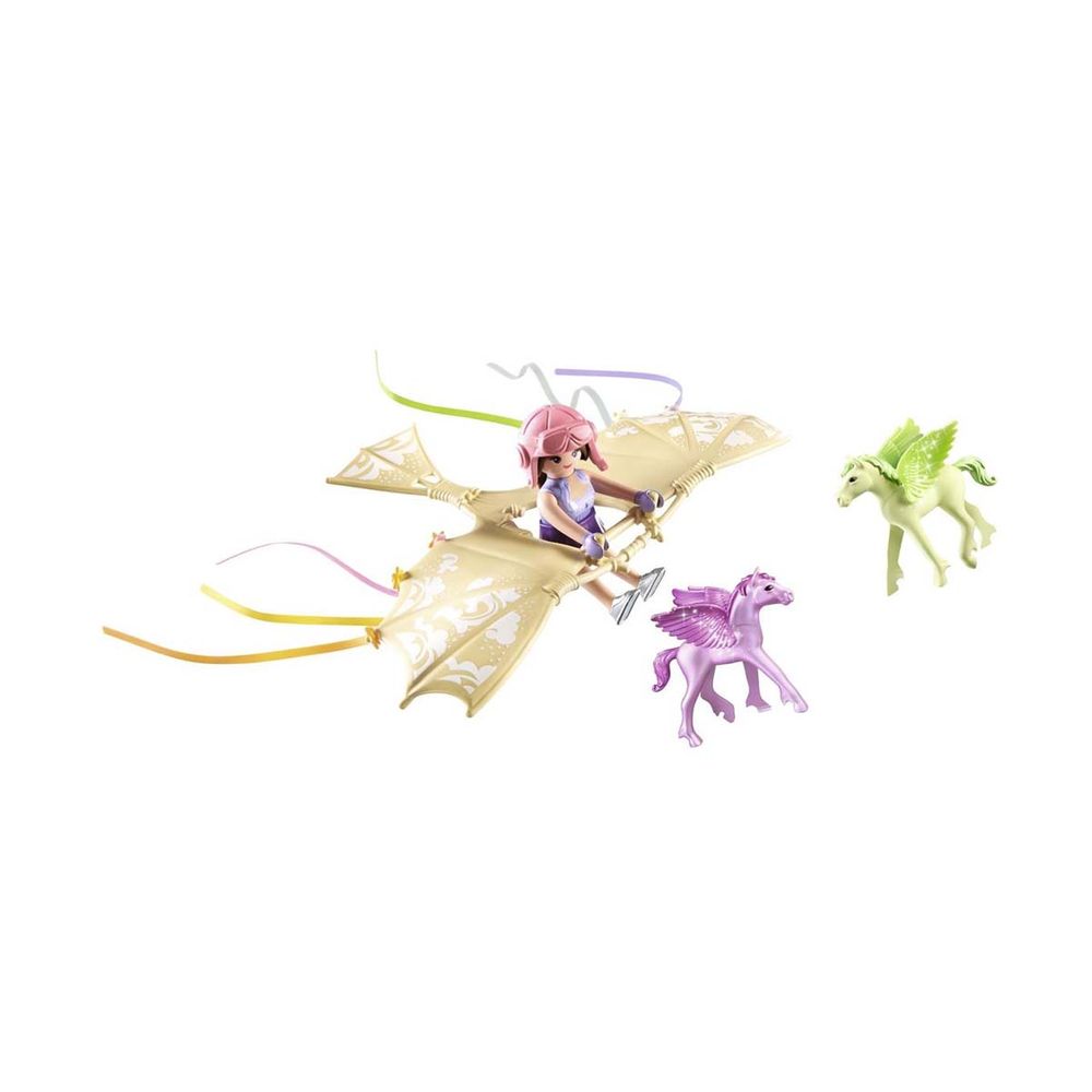 Η πριγκίπισσα του Ουράνιου Τόξου και ο πήγασος της εντυπωσιάζουν με τα ακροβατικά τους στον αέρα. Δημιούργησε τις δικές σου ιστορίες με την σειρά Princess Magic της Playmobil.\n\n