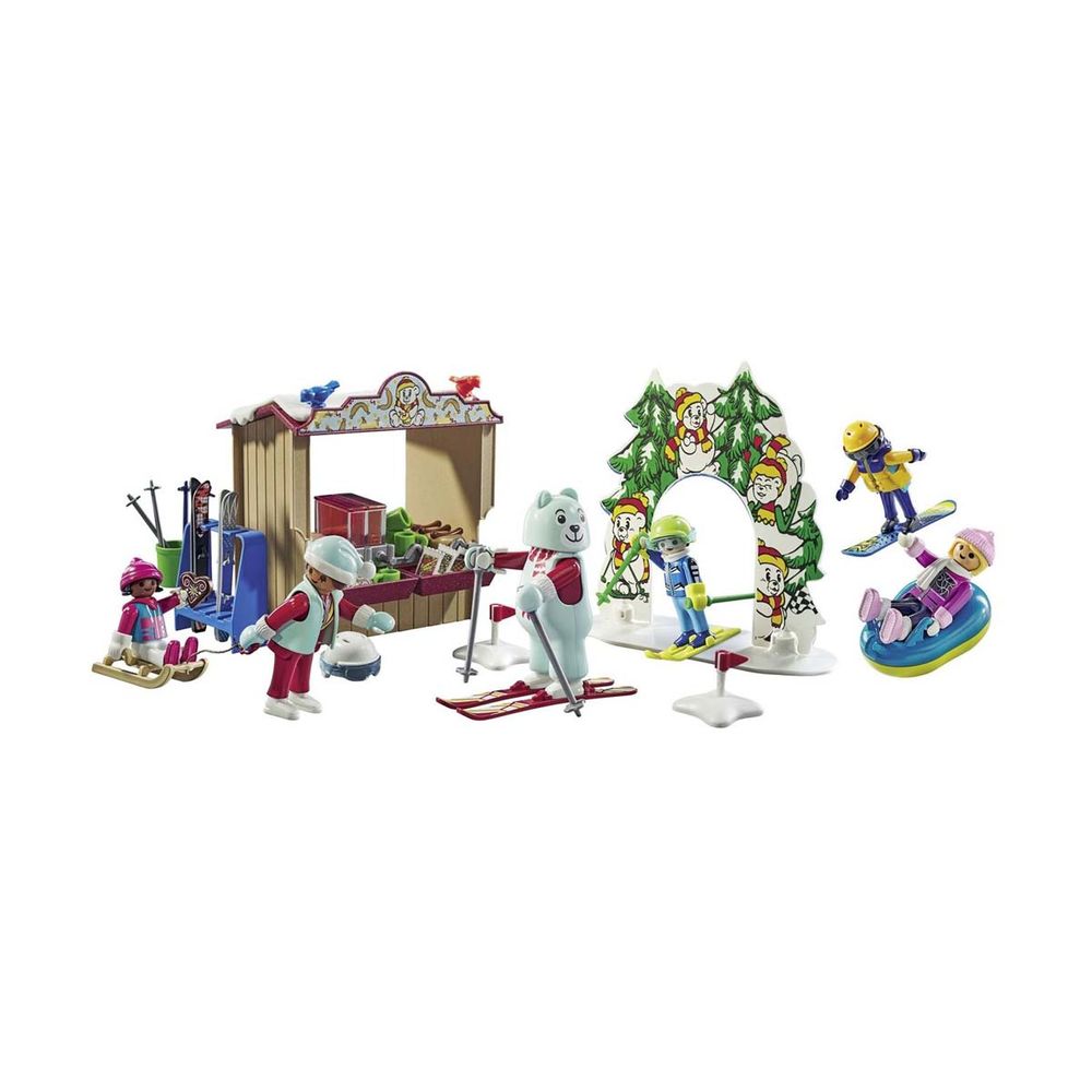 Αυτό το σετ παιχνιδιού μεταφέρει όλους τους λάτρεις των χειμερινών σπορ στον συναρπαστικό κόσμο του σκι. Είτε πρόκειται για σκι, snowboard, ή ακόμα και έλκηθρο, η εμπειρία τους θα είναι μοναδική. Για όσους προτιμούν έναν πιο χαλαρό ρυθμό, μπορούν να απολαύσουν το χειμωνιάτικο τοπίο με έναν χαλαρωτικό περίπατο. Περιλαμβάνει 6 φιγούρες Playmobil, σκι, έλκηθρα, μια σανίδα χιονιού, καθώς και έναν πάγκο με σνακ για ανεφοδιασμό και άλλα απίθανα αξεσουάρ.