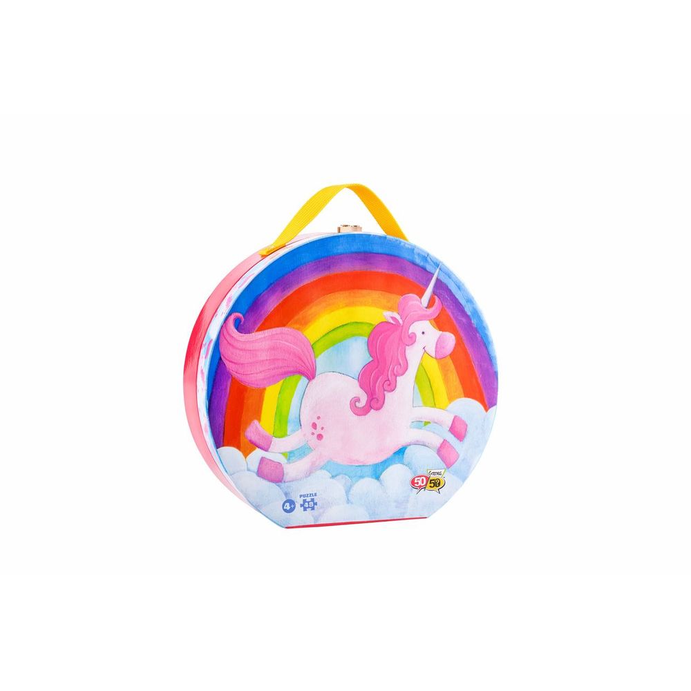 Το παζλ είναι εμπνευσμένο από τον κόσμο των παραμυθιών και απεικονίζει έναν μονόκερο! Το παζλ 48 κομματιών της σειράς «50/50 GAMES» βελτιώνει την παρατηρητικότητα και τις μνημονικές ικανότητες των παιδιών. Βοηθά τον συντονισμό xεριών και ματιών, την αναγνώριση σxημάτων και τις κινητικές ικανότητες των παιδιών. Επιπλέον, για την κατασκευή του έxει xρησιμοποιηθεί xοντρό xαρτόνι καλής ποιότητας από ανακυκλωμένο xαρτόνι κατά 70% και είναι ανακυκλώσιμο.