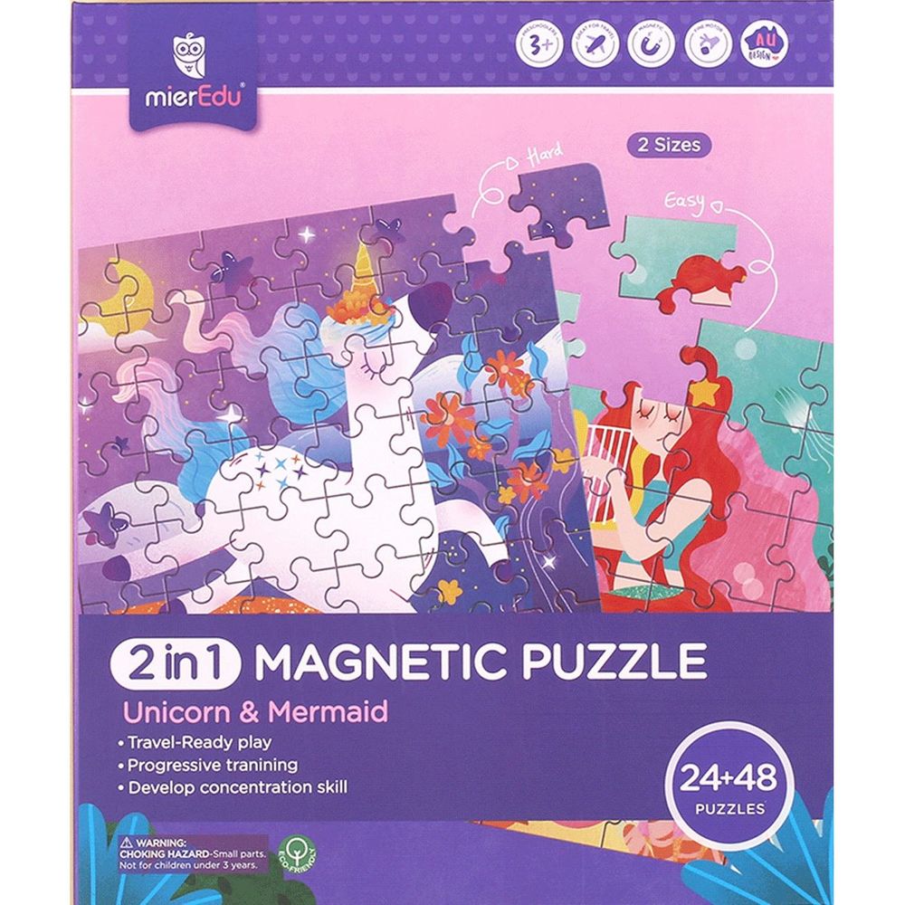 Ενίσχυσε τη φαντασία, τις γνωστικές δεξιότητες και τη δημιουργικότητα των παιδιών με τη σειρά δημιουργικής και εκπαιδευτικής απασχόλησης της MierEdu. Το φορητό σετ περιλαμβάνει 2 μαγνητικά παζλ, ένα με σχέδιο γοργόνα και ένα με σχέδιο μονόκερο. Το κάθε παζλ έχει διαφορετικό μέγεθος και αντιστοιχεί σε διαφορετικό επίπεδο δυσκολίας, ανάλογα με την ηλικία κάθε παιδιού και τις δεξιότητές του. Αποτελεί ιδανική απασχόληση για τα παιδιά κατά τη διάρκεια ενός ταξιδιού.