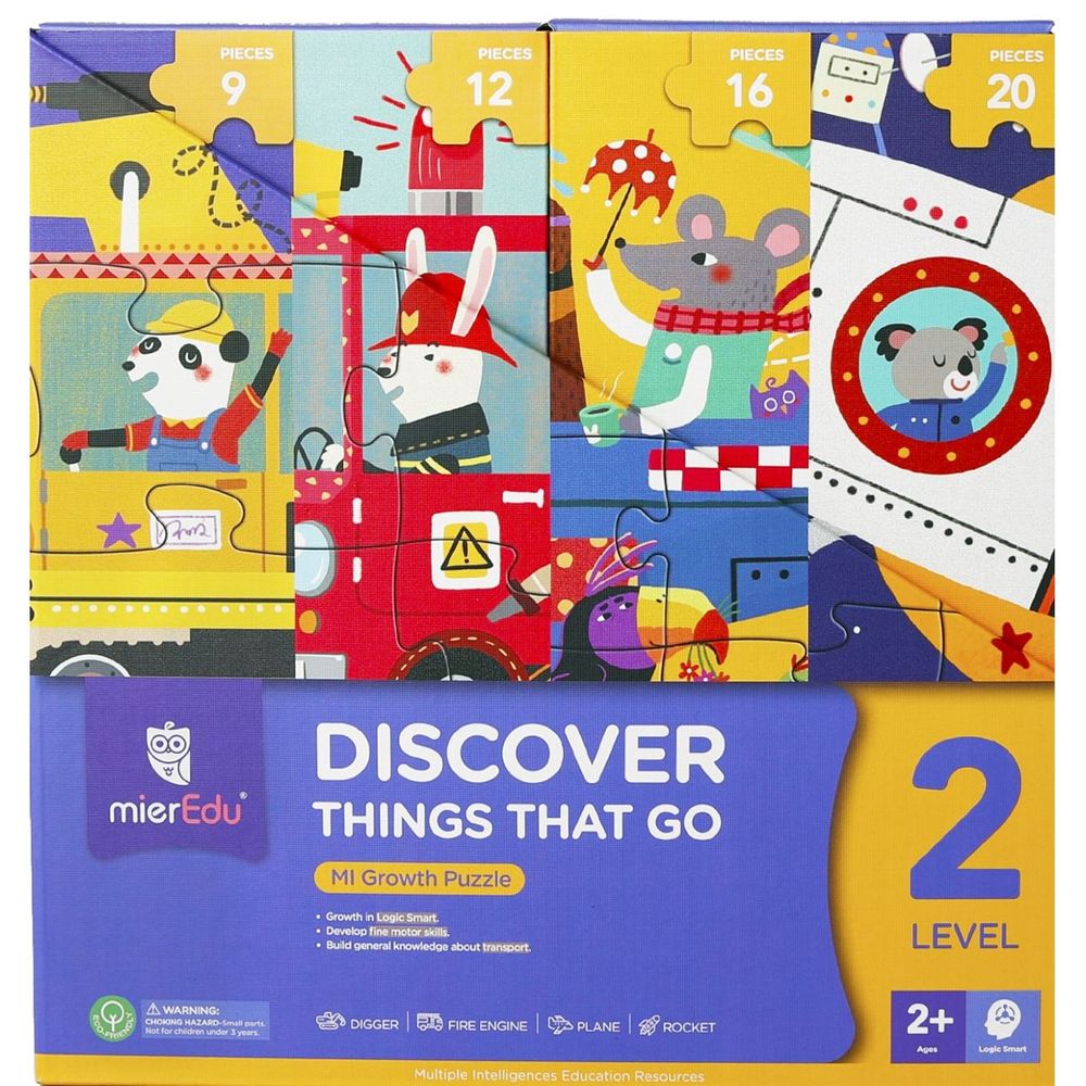 Ενίσχυσε τη φαντασία, τις γνωστικές δεξιότητες και τη δημιουργικότητα του παιδιου με τη σειρά δημιουργικής και εκπαιδευτικής απασχόλησης της MierEdu. Ώρα να παρατηρήσουμε διαφορετικά οχήματα μέσα από 4 παζλ προοδευτικής δυσκολίας. Τα 4 αυτά παζλ αποτελούνται από 9, 12, 16 και 20 κομμάτια αντίστοιχα και το κάθε ένα από αυτά αντικατοπτρίζει ένα όχημα (εκσκαφέας, πυροσβεστικό όχημα, αεροπλάνο, διαστημόπλοιο).