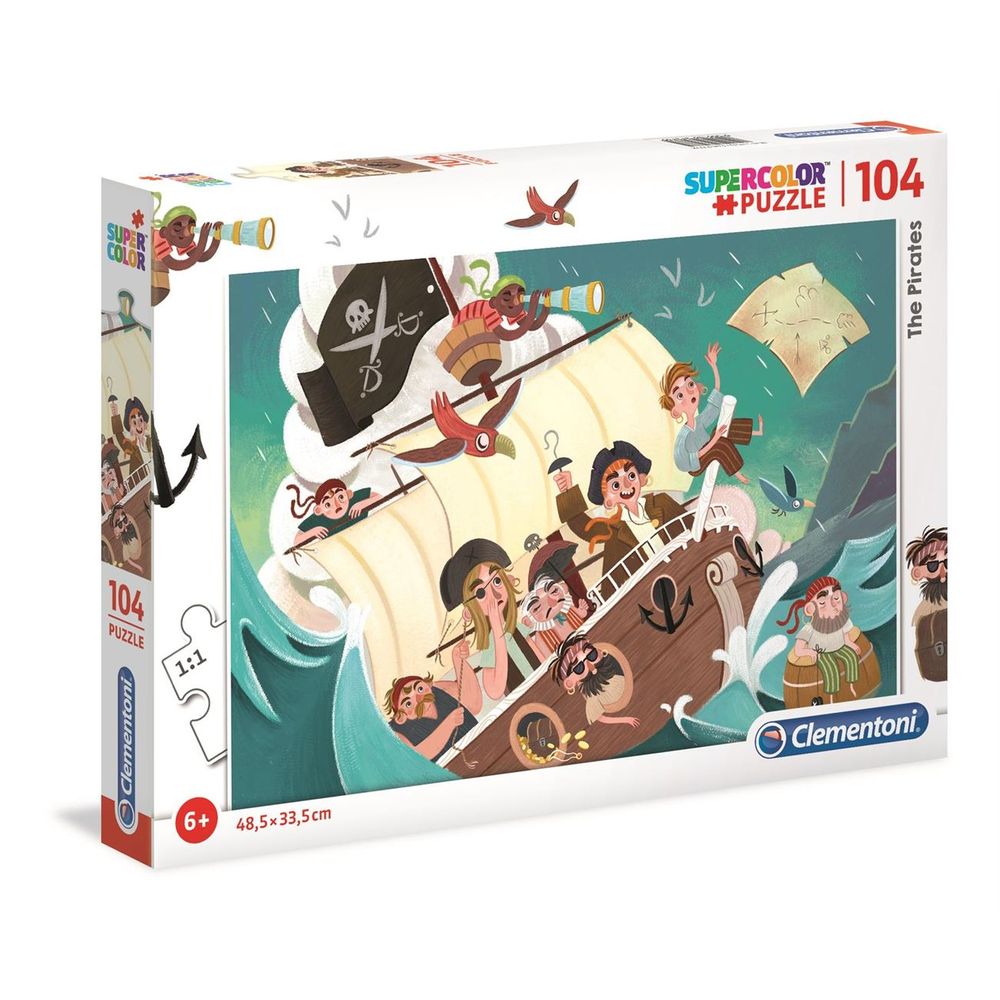 Clementoni Παιδικό παζλ Super Color με θέμα Πειρατές. Μια τεράστια ποικιλία από παζλ ειδικά σχεδιασμένα για παιδιά για να τα βοηθήσουν να βελτιώσουν την παρατηρητικότητα τους καθώς και τις λογικές και χειρωνακτικές τους δεξιότητες.Συντονισμένα με τη σημασία της περιβαλλοντικής ευαισθητοποίησης, τα puzzle Clementoni φτιάχνονται με εκτεταμένη χρήση ανακυκλωμένων υλικών, αποφεύγοντας παράλληλα τη χρήση από τυχόν συστατικά που περιέχουν ρύπους.Τεμάχια Παζλ: 104 Διαστάσεις Παζλ: 48.5x33.5cm