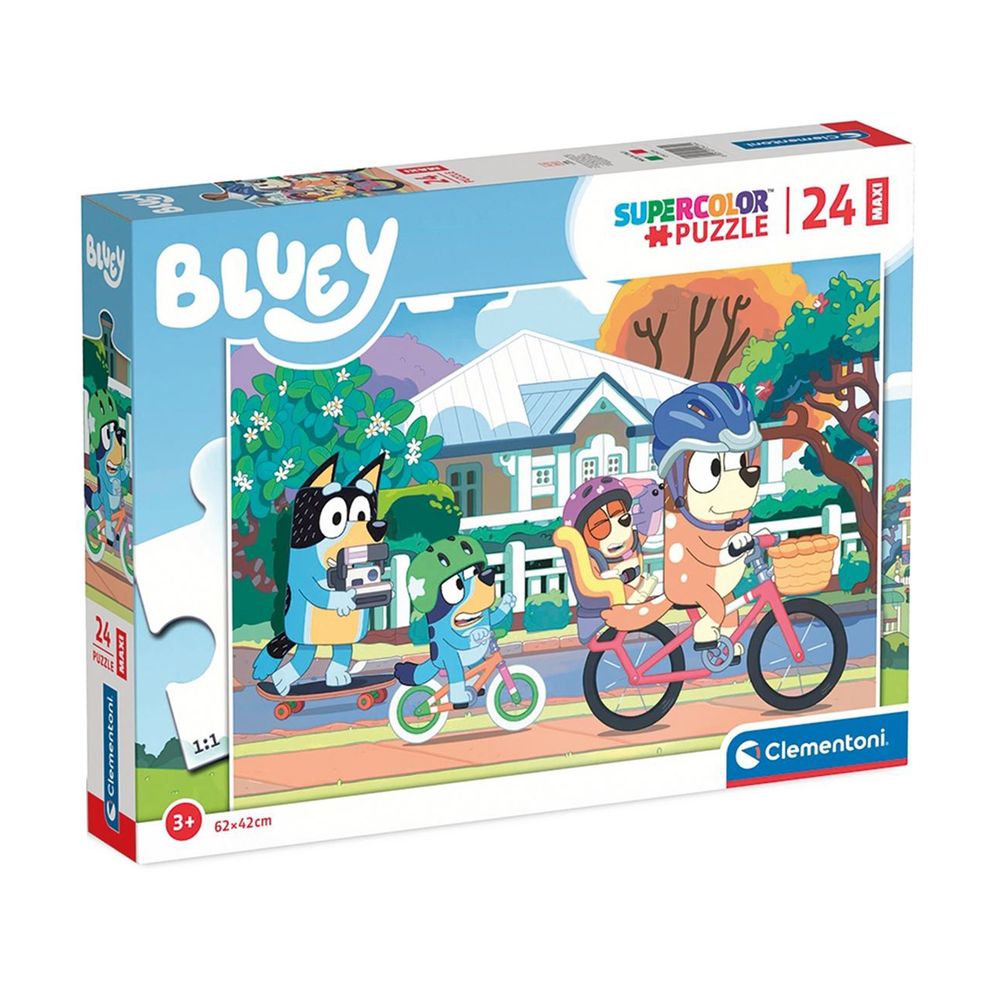 Clementoni Παιδικό Παζλ Maxi Supercolor με θέμα Bluey. Τα διακριτικά φινιρίσματα και τα πρωτότυπα εφέ μετατρέπουν το κλασικό παιδικό χόμπι σε μια σύγχρονη, συναρπαστική εμπειρία παιχνιδιού. Μοναδικές δημιουργίες που μπορούν να χρησιμοποιηθούν για να διακοσμήσουν την παιδική κρεβατοκάμαρα.