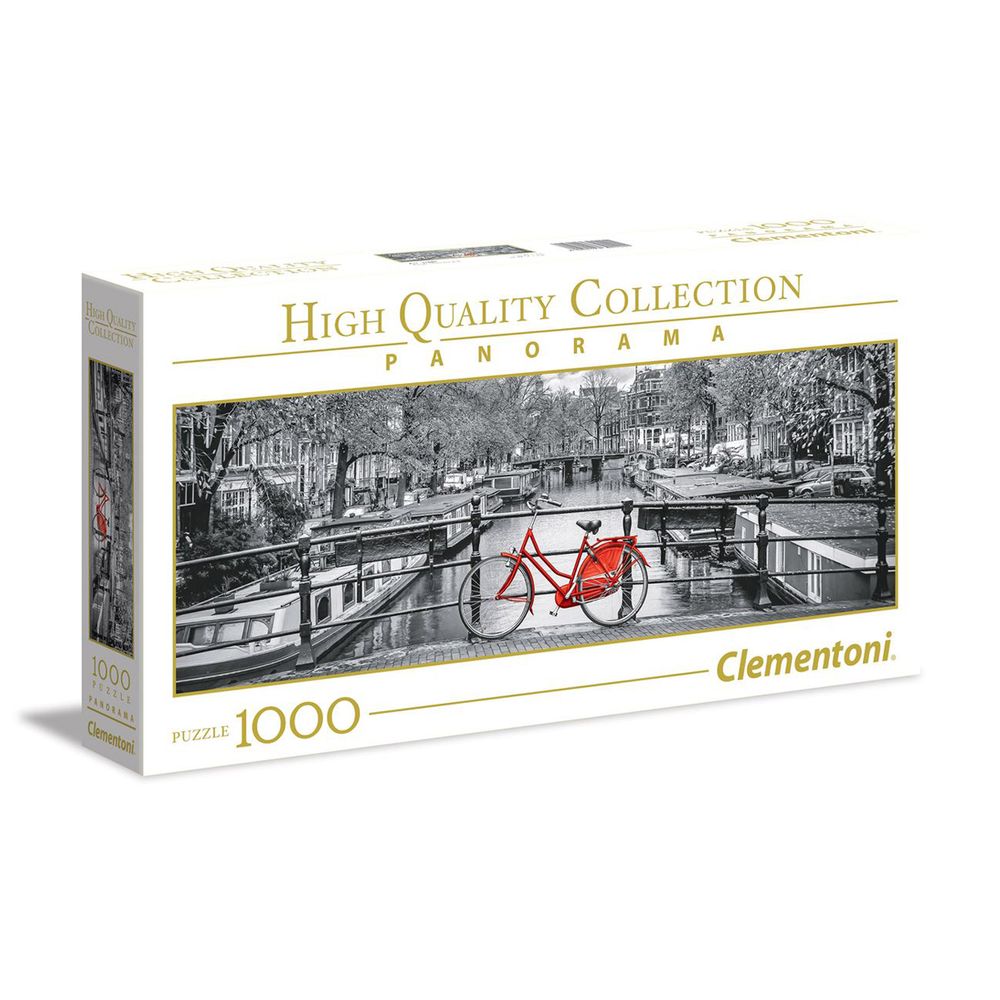 Clementoni Παζλ 1000 τεμαχίων της σειράς Panorama με θέμα ποδήλατο στο Αμστερνταμ. Η Clementoni με τη σειρά παζλ Panorama φέρνει την αναπαράσταση μία εικόνας σε οπτικό εύρος μεγαλύτερο από το φυσιολογικό. Συντονισμένα με τη σημασία της περιβαλλοντικής ευαισθητοποίησης, τα puzzle φτιάχνονται με εκτεταμένη χρήση ανακυκλωμένων υλικών, αποφεύγοντας παράλληλα τη χρήση από τυχόν συστατικά που περιέχουν ρύπους.