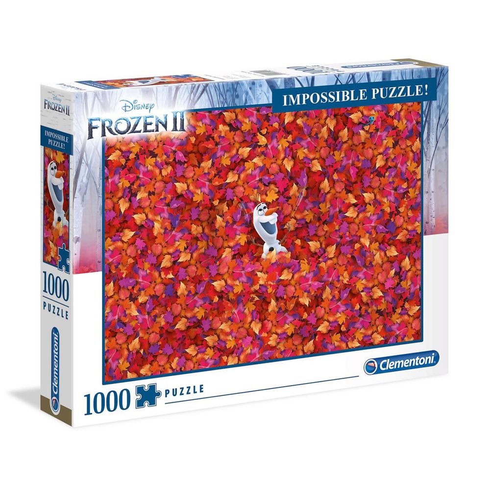 Clementoni Παζλ 1000 τεμαχίων της σειράς Impossible με θέμα Disney Frozen 2. Η σειρά παζλ Clementoni Impossible είναι από τα πιο δύσκολα και σχεδόν ακατόρθωτα παζλ στον κόσμο. Συντονισμένα με τη σημασία της περιβαλλοντικής ευαισθητοποίησης, τα παζλ Clementoni φτιάχνονται με εκτεταμένη χρήση ανακυκλωμένων υλικών, αποφεύγοντας παράλληλα τη χρήση από τυχόν συστατικά που περιέχουν ρύπους.