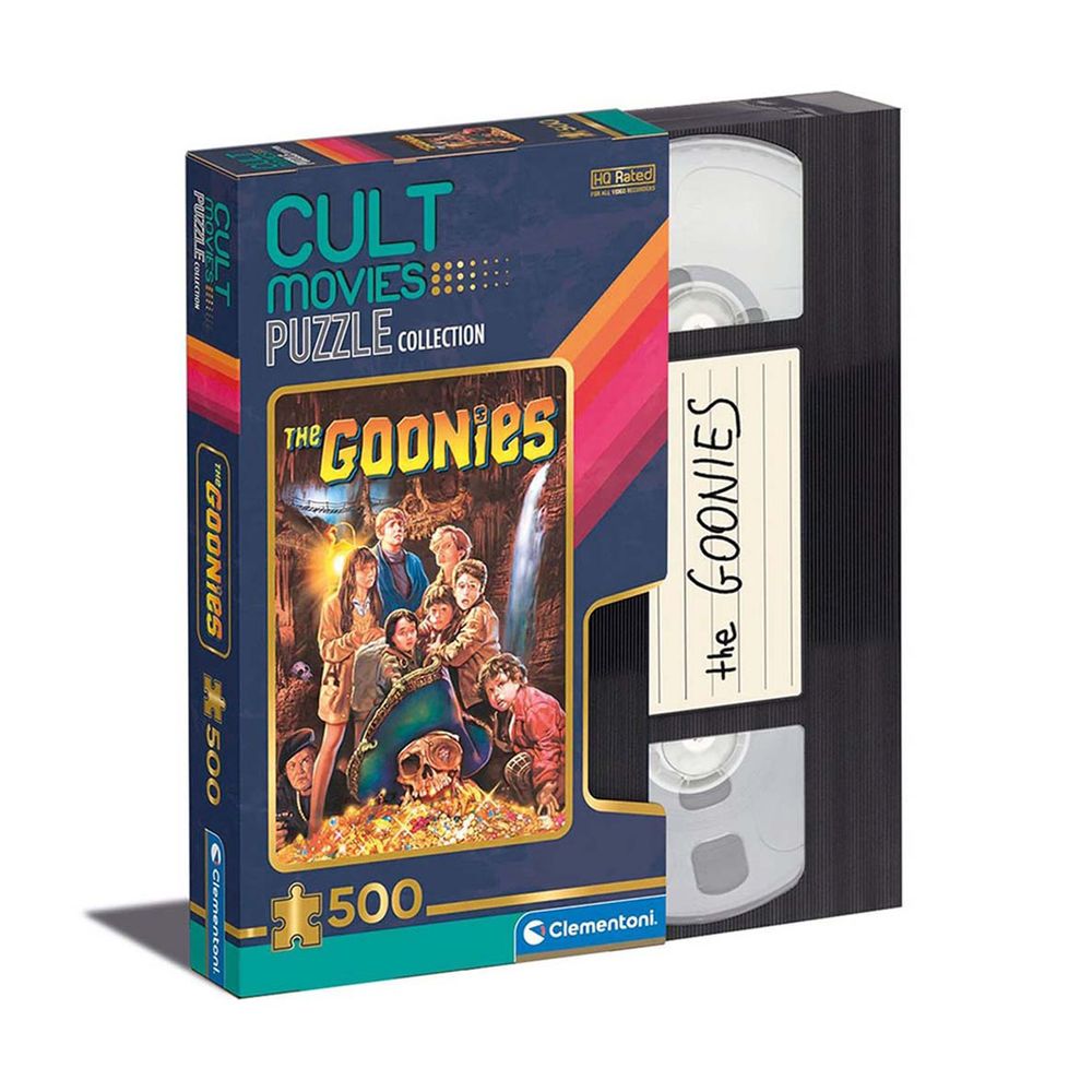 Clementoni Παζλ 500 τεμαχίων της σειράς Cult Movies με θέμα The Goonies (Το κυνήγι της μεγάλης περιπέτειας). Μια βραδιά με φίλους, ένα βίντεο και μια ταινία για διασκέδαση. Η σειρά παζλ Cult Movies επαναφέρει τα συναισθήματα των 80s και 90s με μία μοναδική συλλογή.