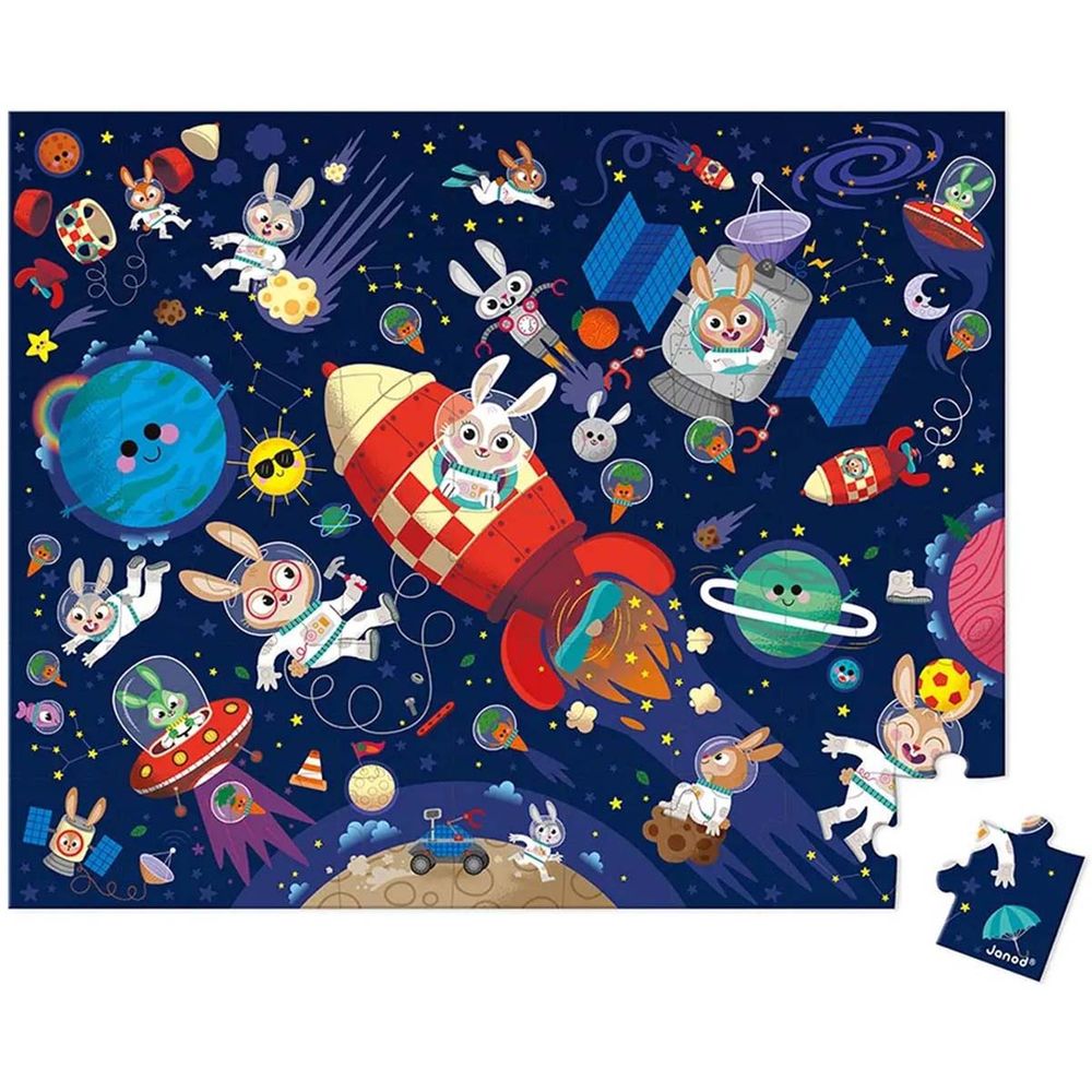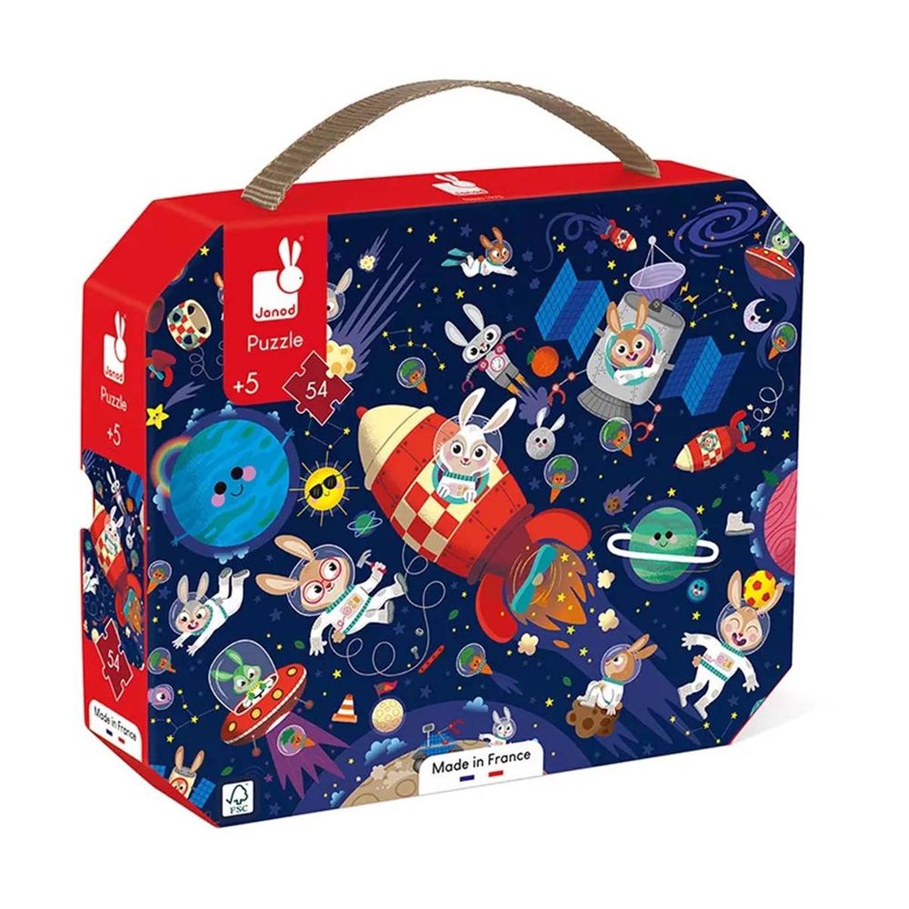 Παζλ με θέμα το διάστημα 54 τεμαχίων. Με μελάνια φυτικής προέλευσης και χαρτόνι FSCTM. Αναπτύσσει τις λεπτές κινητικές δεξιότητες και ενθαρρύνει τη συγκέντρωση. Πωλείται σε βαλιτσάκι με χερούλι.