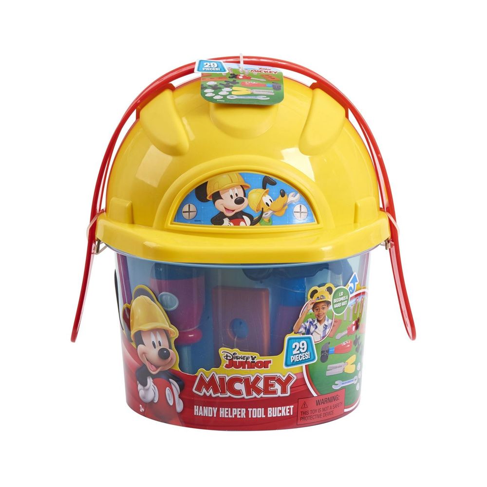 Σετ παιχνιδιού με εργαλεία του Μίκυ με κουβά με λαβή για να μεταφέρετε παντού μαζί σου. Το σετ περιλαμβάνει 25 κομμάτια που μπορούν να χρησιμοποιηθούν για δημιουργικές κατασκευές. Το καπάκι του κουβά μετατρέπεται ακόμη και σε καπέλο κατασκευής.