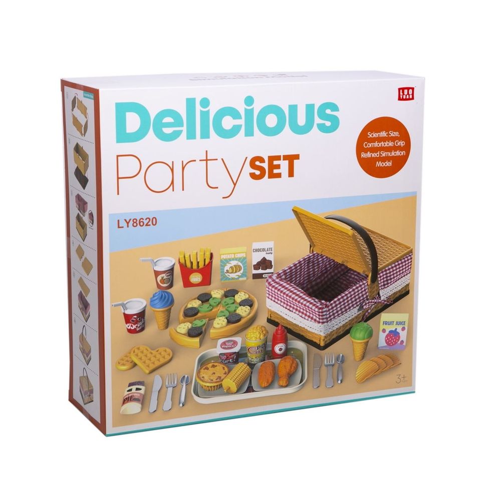 Ώρα για πικ νικ! Με αυτό το συναρμολογούμενο καλάθι πικ νικ, μπορείς να διοργανώσεις την καλύτερη βόλτα στην εξοχή με την οικογένεια ή τους φίλους σου. Το σετ περιλαμβάνει 1 ποτήρι με χυμό, 1 ποτήρι καφέ, 3 cupcakes, 3 μακαρον, 3 πάστες, 2 ντόνατς, 6 κομμάτια πίτσα, 1 κέτσαπ, 1 τούρτα με βάση και γλάσσο, 2 πιάτα, 1 πιρούνι, 1 κουτάλι, 1 μπέργκερ, 1 κουτί χυμό φράουλας, 1 κουτί χυμό σοκολάτα, 1 δίσκο και 1 καλάθι πικ νικ.