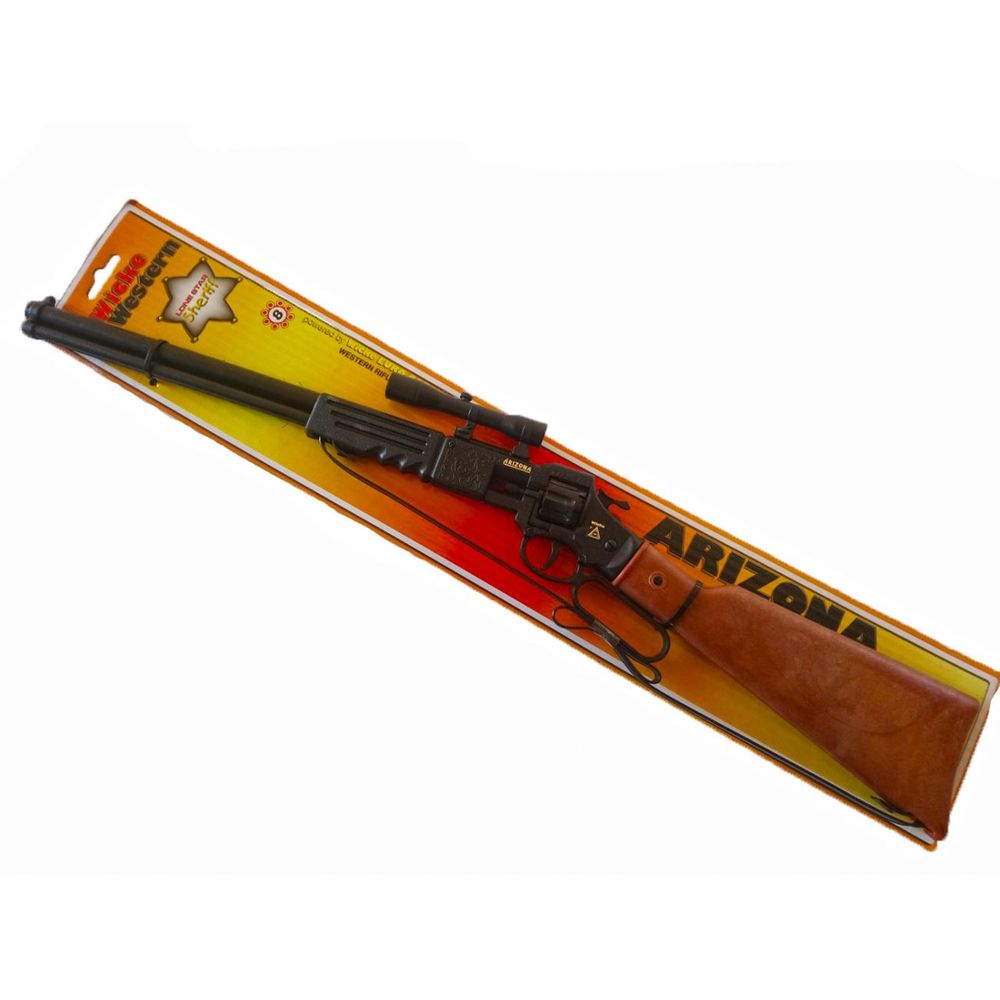 Καραμπίνα οκτάσφαιρη Arizona διάστασης 64 cm σε καρτέλα. Η καραμπίνα λειτουργεί με 8σφαιρα καψούλια (δεν περιλαμβάνονται).