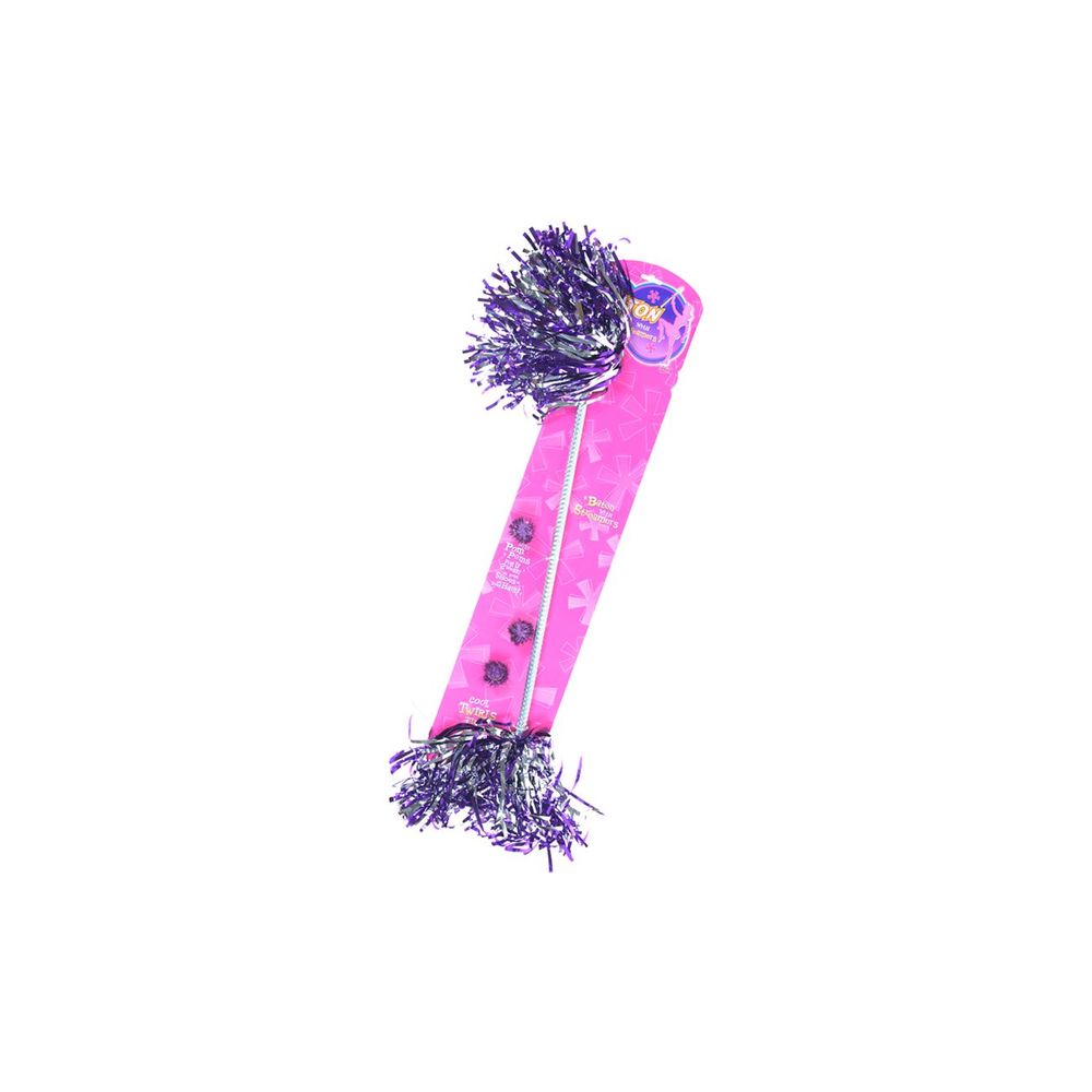 Μπαστούνι μαζορέτας σε χρώμα ασημί-μωβ μήκους 54 cm. Η συσκευασία διαθέτει 3 pom-pom με λαστιχάκι για τα μαλλιά ή τα ρούχα της μαζορέτας.