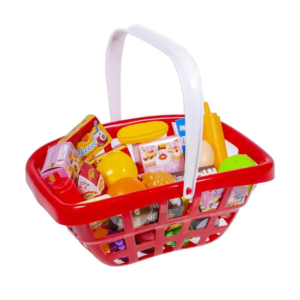 Καλάθι χειρός σούπερ μάρκετ με 40 τεμάχια από διάφορα είδη τροφίμων, που ενθαρρύνει το παιχνίδι ρόλων και βοηθά τα παιδιά να αναπτύξουν κοινωνικές δεξιότητες, μιμούμενα τους μεγάλους και εφευρίσκοντας ρόλους.