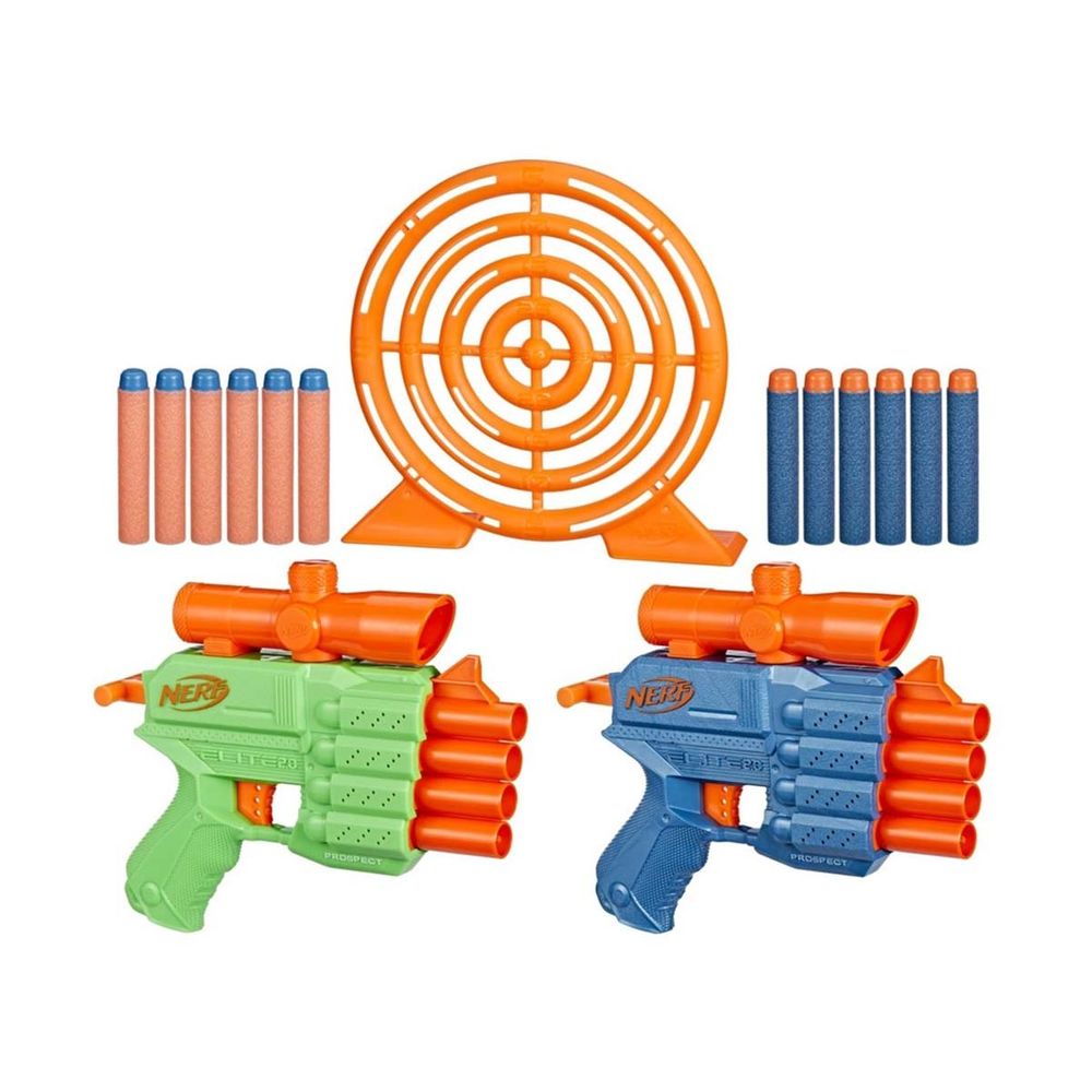 Το Nerf Face Off Target Set είναι ένα σετ που περιλαμβάνει 2 εκτοξευτές, έναν στόχο και 12 βελάκια Elite Nerf! Αυτοί οι εκτοξευτές αφρού αποτελούν φανταστικά παιχνίδια για ατελείωτη διασκέδαση στην ύπαιθρο. Κάθε εκτοξευτής Nerf χωράει 4 βελάκια τα οποία εκτοξεύονται στην σειρά.