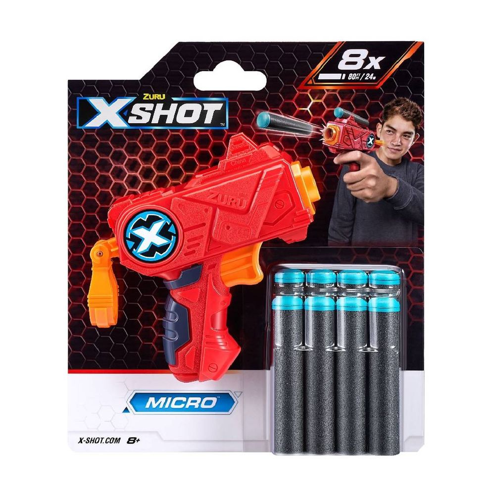 Μην ξεγελιέσαι από το μέγεθός του, το X-Shot MICRO blaster είναι απίστευτα ισχυρό! Μικρό αλλά ακριβές, μπορεί να εκτοξεύσει έως και 24 μέτρα που σίγουρα θα αιφνιδιάσουν τους αντιπάλους σου! Με τον χώρο για τα βελάκια στην κορυφή του, το Micro είναι εύκολο να φορτώσει ξανά για να επιστρέψεις γρήγορα στη δράση!