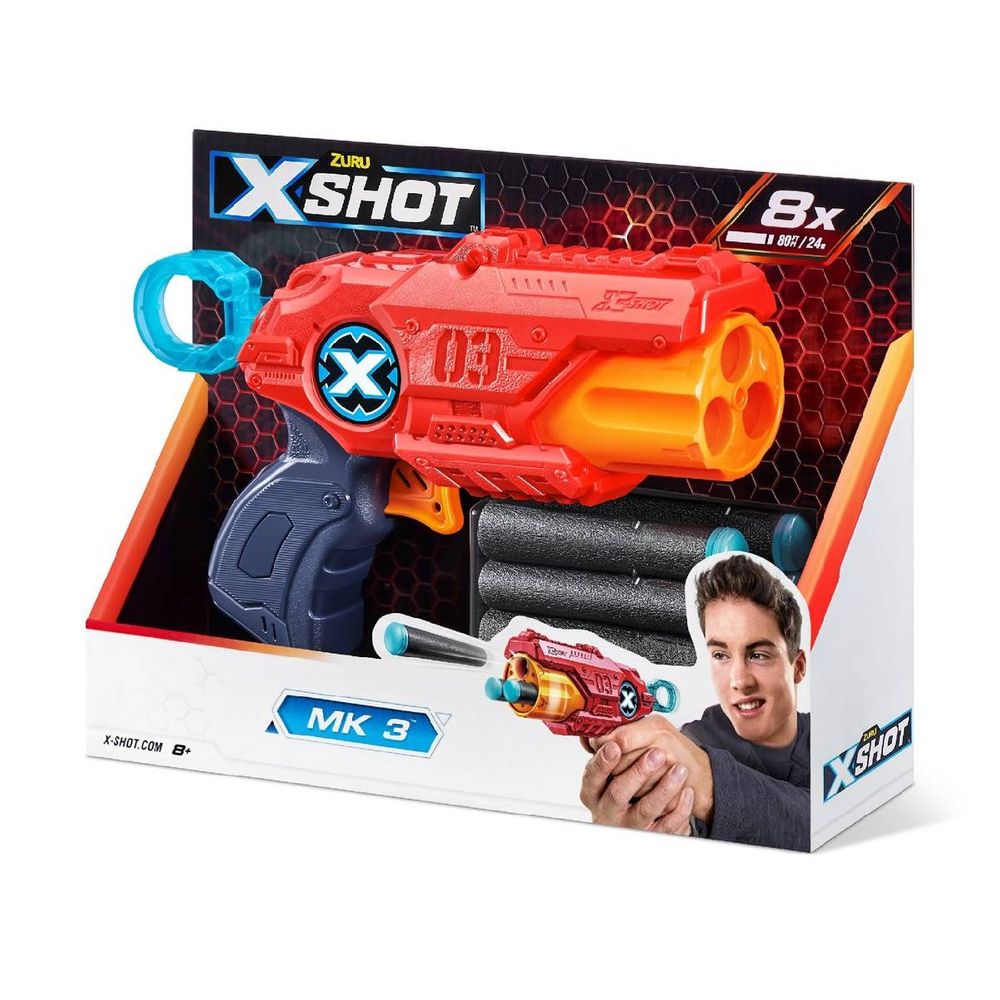 X-Shot Excel MK 3 σου επιτρέπει να εκτοξεύεις 3 βελάκια σε γρήγορη διαδοχή χάρη στην περιστρεφόμενη κάννη του. Πέτυχε στόχους έως και 24 μέτρα μακριά με απόλυτη ακρίβεια! Το τέλειο blaster για δράση που απαιτεί ταχύτητα και ευκινησία!