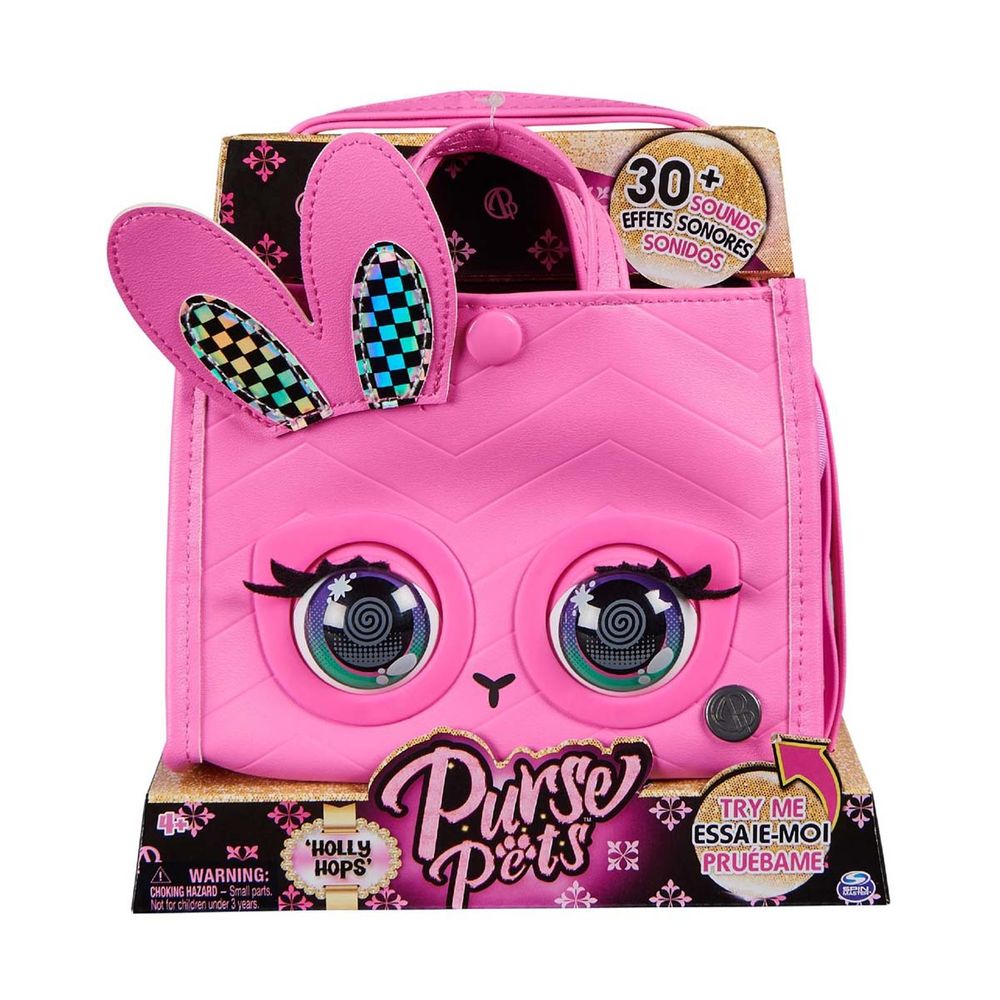Οι τσάντες Purse Pets είναι οι απαραίτητες συντροφιές που ζωντανεύουν με έξυπνες αντιδράσεις και πάνω από 30 ήχους και άνετη μεταφορά χάρη στους διπλούς ιμάντες. Η Holly Hops, με το ροζ σεβρόν ύφασμα, ολογραφικά καρό αυτιά λαγού, μάτια εμπνευσμένα από την pop-art και κλείσιμο με κουμπωτό, προσφέρει διασκέδαση και στυλ σε κάθε μικρή φίλη της μόδας. Μπορείς να την φοράς ως τσάντα ώμου ή σταυρού για άνετη και στιλάτη εμφάνιση.