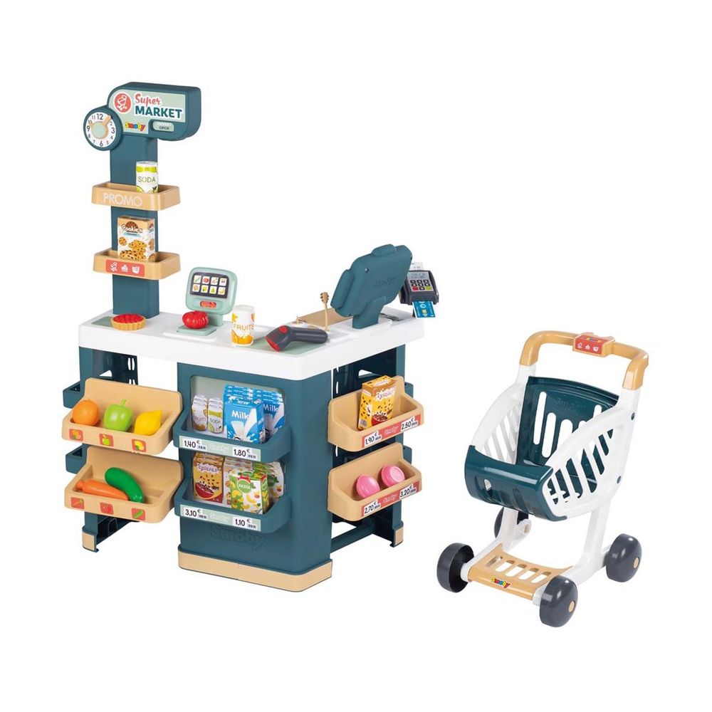 Ο πάγκος σούπερ μάρκετ προσφέρει μια ρεαλιστική εμπειρία για τα παιδιά, με ταμείο, χώρο φρούτων και λαχανικών και ζύγιση. Περιλαμβάνει 42 αξεσουάρ, συμπεριλαμβανομένων φρούτων, λαχανικών, ηλεκτρονικού σαρωτή barcode, ταμειακή μηχανή, συρτάρι χρημάτων, καροτσάκι και πολλά άλλα.