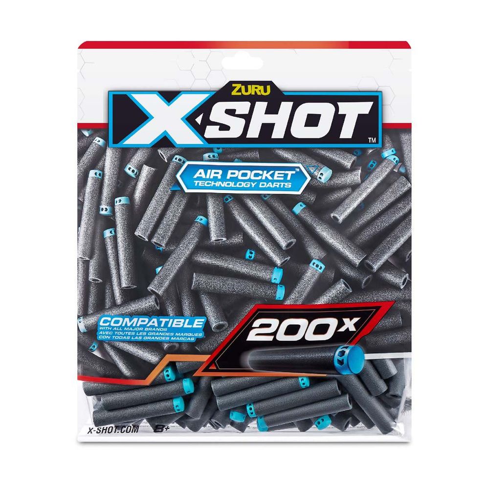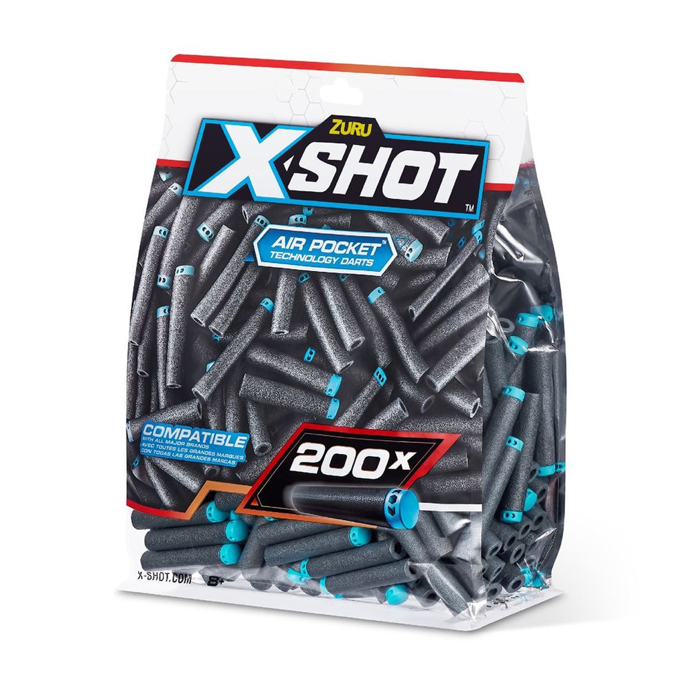 Πακέτο αναπλήρωσης με 200 βελάκια X-Shot για να μη χάνεις ποτέ τη δράση! Τα βελάκια τεχνολογίας X-Shot Air Pocket είναι σχεδιασμένα για ταχύτερη και ακριβέστερη εκτόξευση και είναι συμβατά με τις περισσότερες κορυφαίες μάρκες. Τα βελάκια έρχονται συσκευασμένα σε επανασφραγιζόμενη τσάντα για εύκολη αποθήκευση μετά τη μάχη.